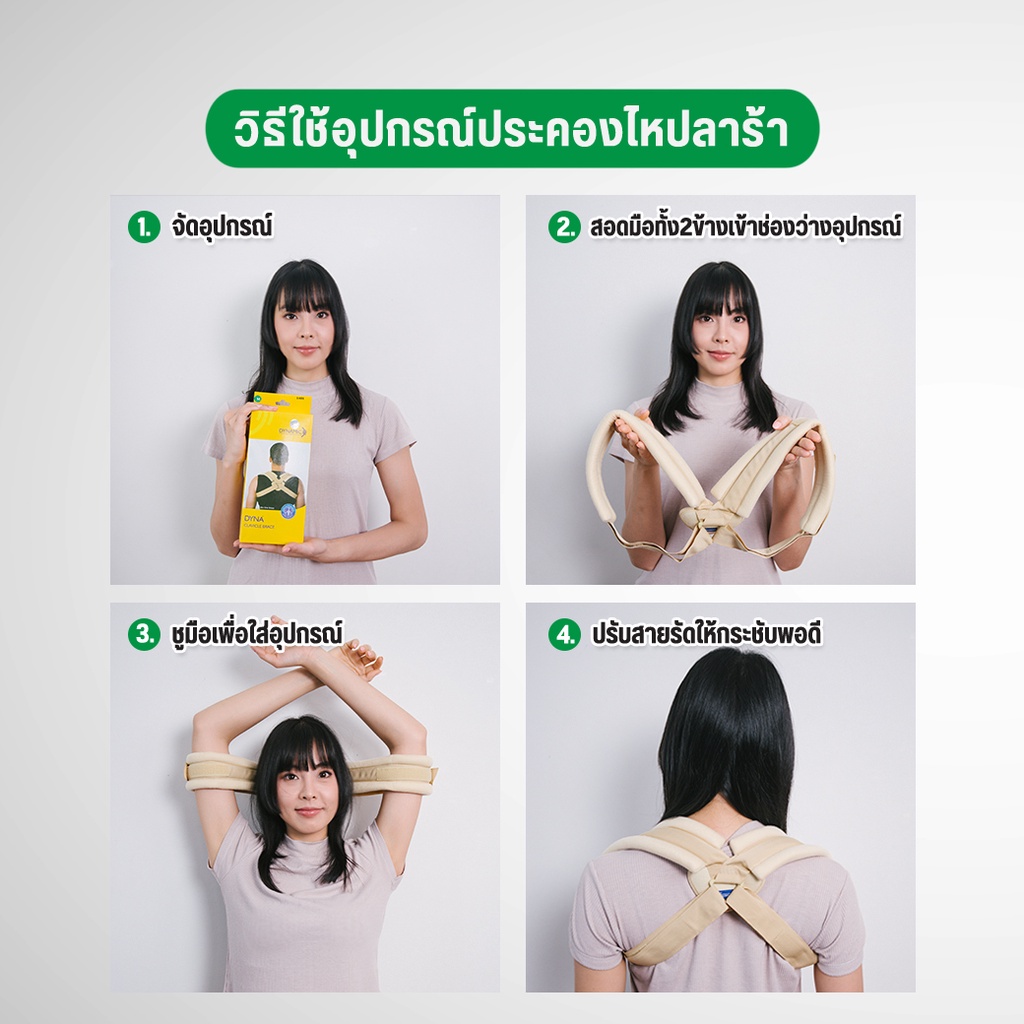 อุปกรณ์ประคองไหปลาร้าและหัวไหล่ ช่วยพยุงไหปลาร้า พยุงหัวไหล่ เข็มขัดพยุงหลัง เสื้อพยุงหลัง แก้หลังค่อม สีครีม Dynamic