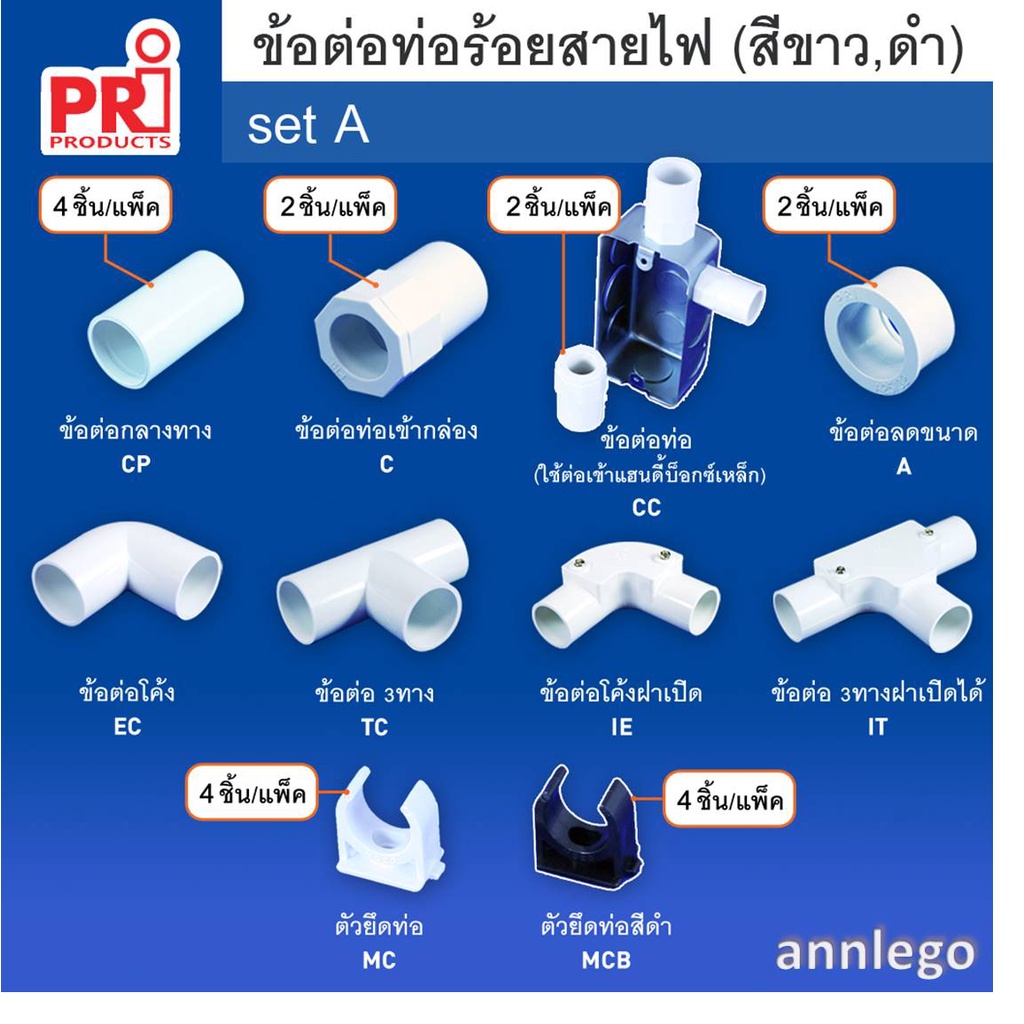 อุปกรณ์ ข้อต่อท่อร้อยสายไฟพลาสติก PVC ยี่ห้อ PRI