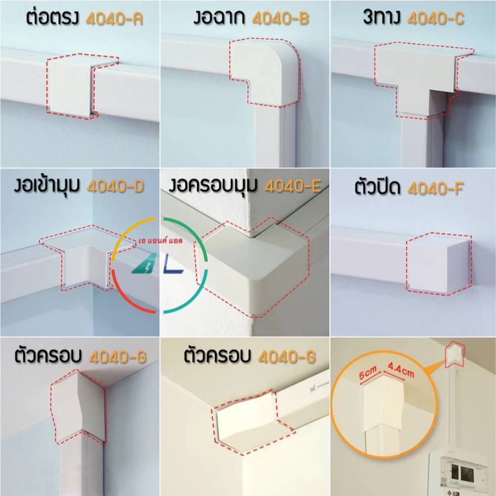 อุปกรณ์ ข้อต่อ รางไฟพลาสติก PVC ยี่ห้อ PRI รุ่น 4040 1 แพค มี 5 ชิ้น, (ราง 1 แพค มี 1 เส้น)