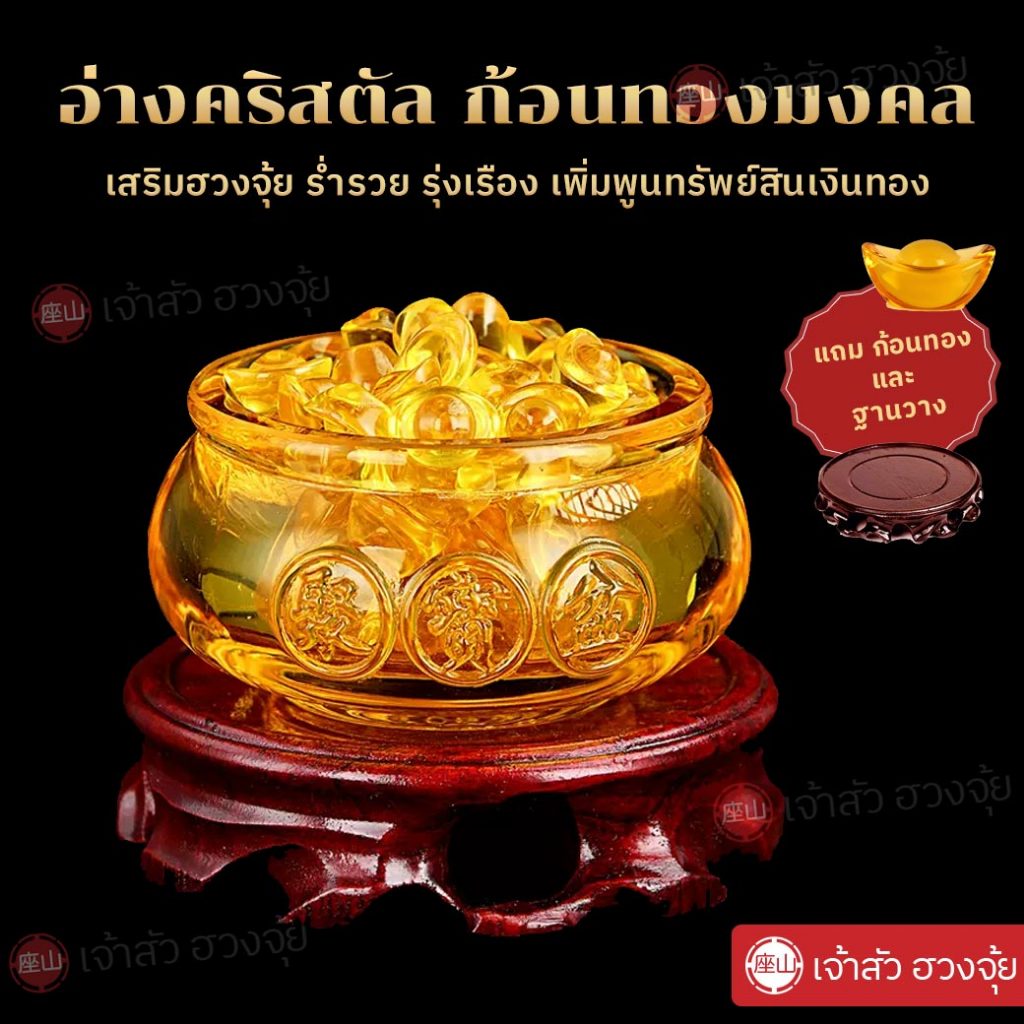 อ่างคริสตัส ทองคำ+ก้อนทอง แถมฟรี ฐานวาง เสริมฮวงจุ้ย นำโชคลาภ ของขวัญ ร่ำรวย