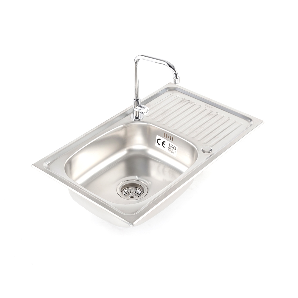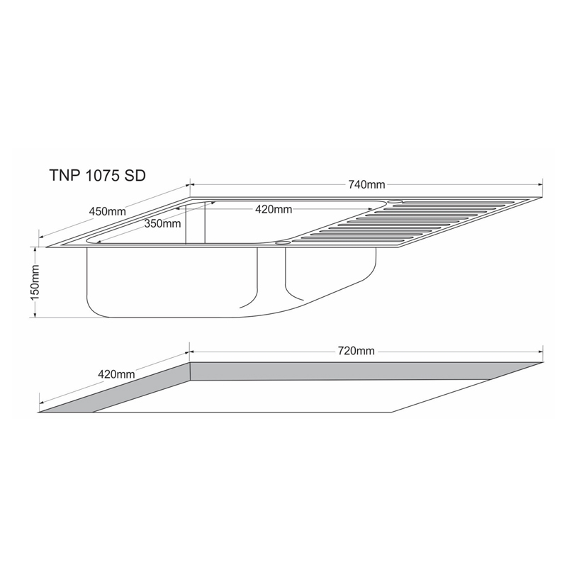 อ่างล้างจาน 1 หลุม 1 ที่พัก แบบฝัง Tecnoplus รุ่น TNP 1075 SD ขนาด 74 ซม. ลึก 12 ซม.