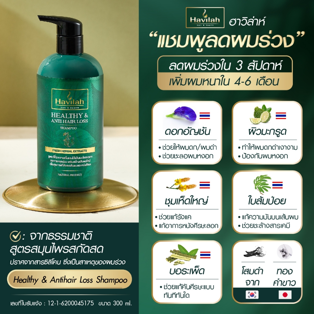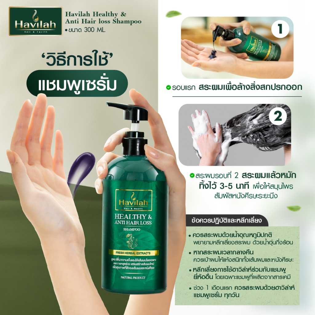 ฮาวิล่าห์ (Havilah) แชมพูแก้ผมร่วง ลดผมร่วง สมุนไพรสด 300 มล. l Havilah Fresh Herbal Shampoo Anti-Hair Fall (ส่งฟรี)