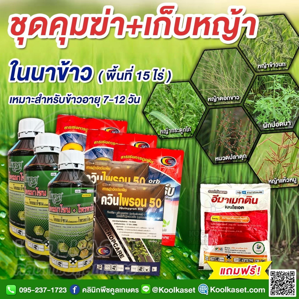 ชุดคุมฆ่า+เก็บหญ้าในนาข้าว 15 ไร่กำจัดหญ้า ข้าวนก เทียนนา กก หนวดปลาดุก หญ้าดอกขาว นาข้าวอายุ 7-12 วัน คูลเกษตร KP48