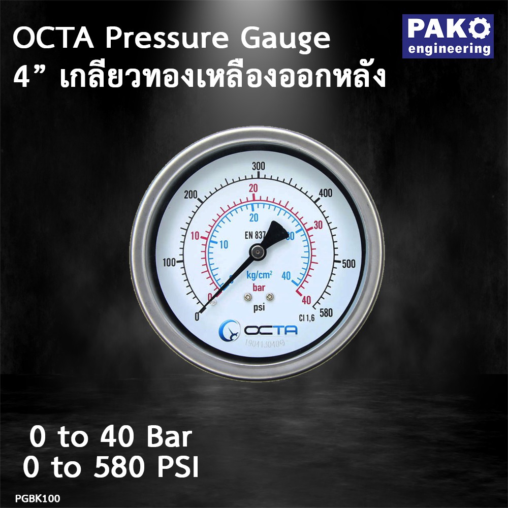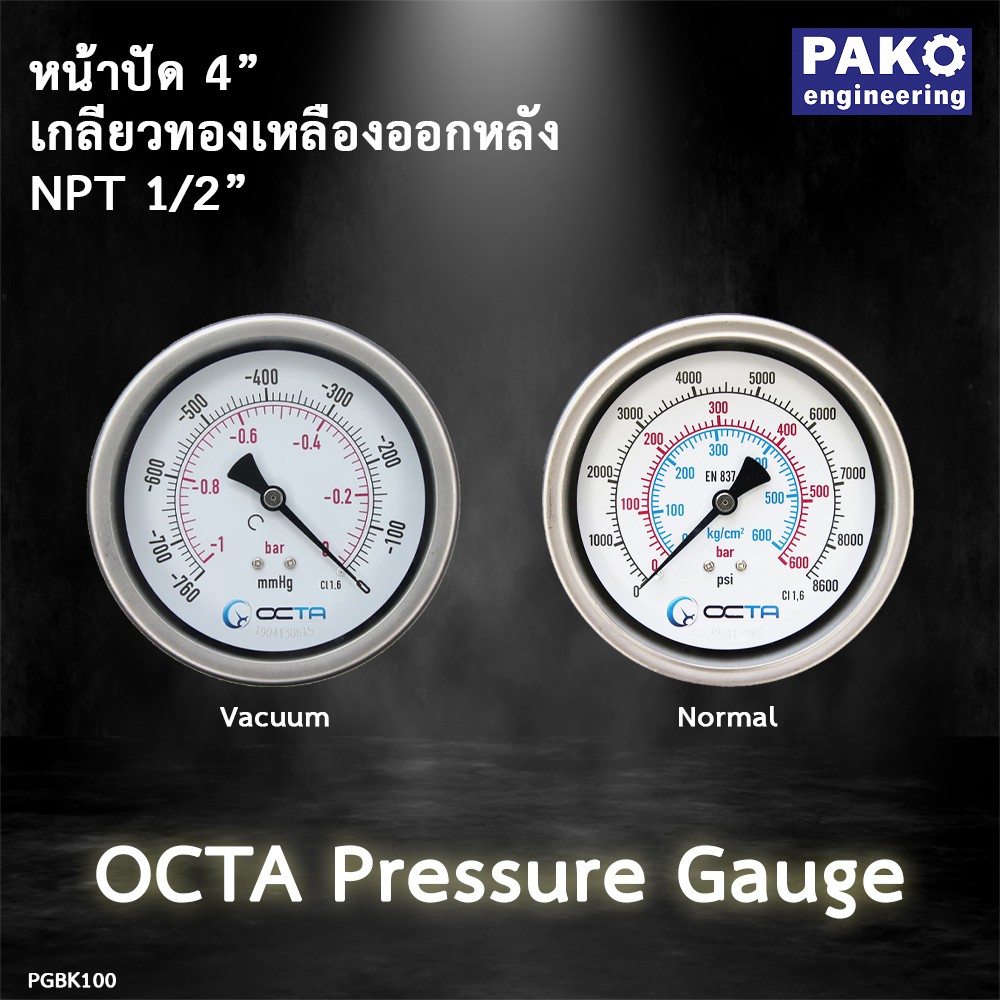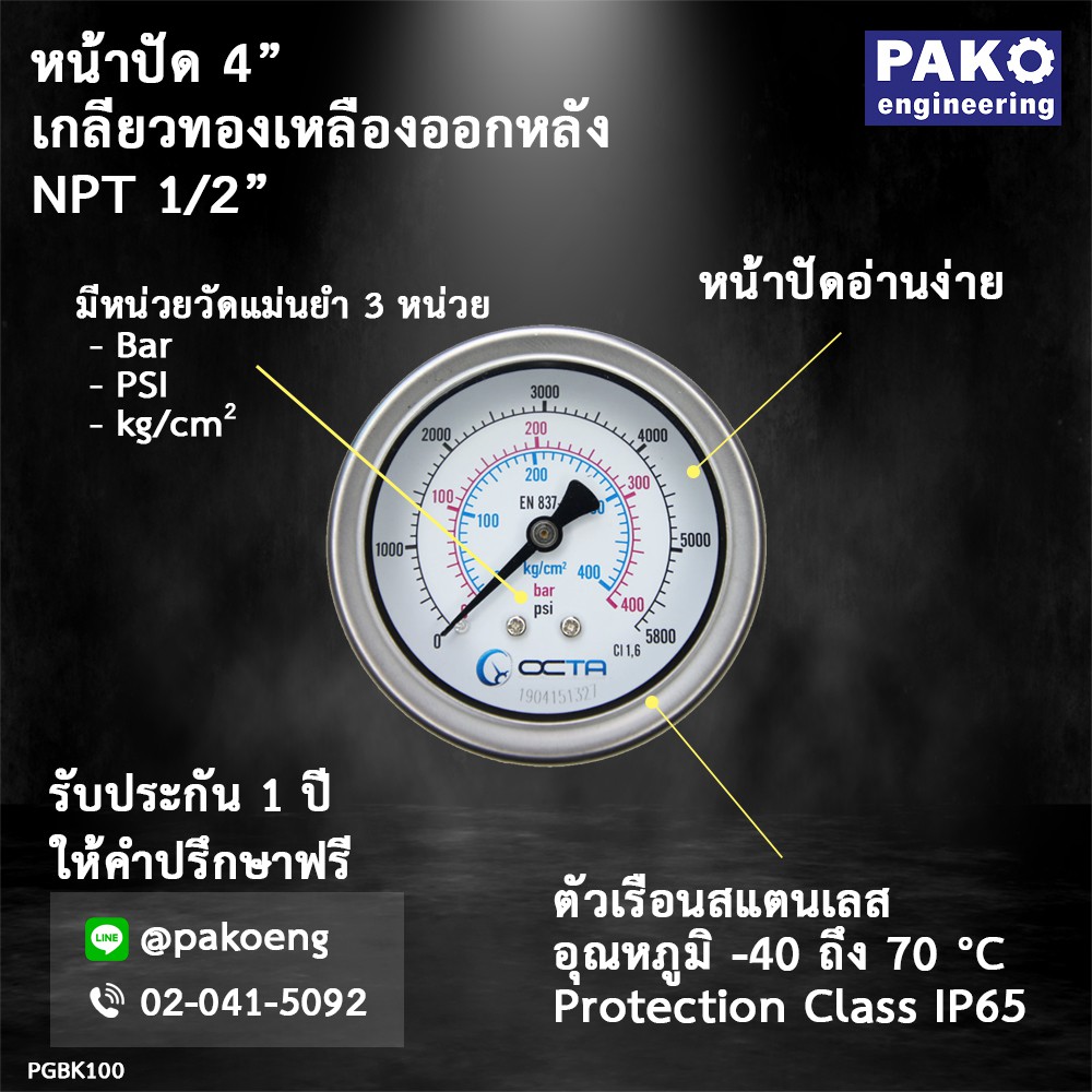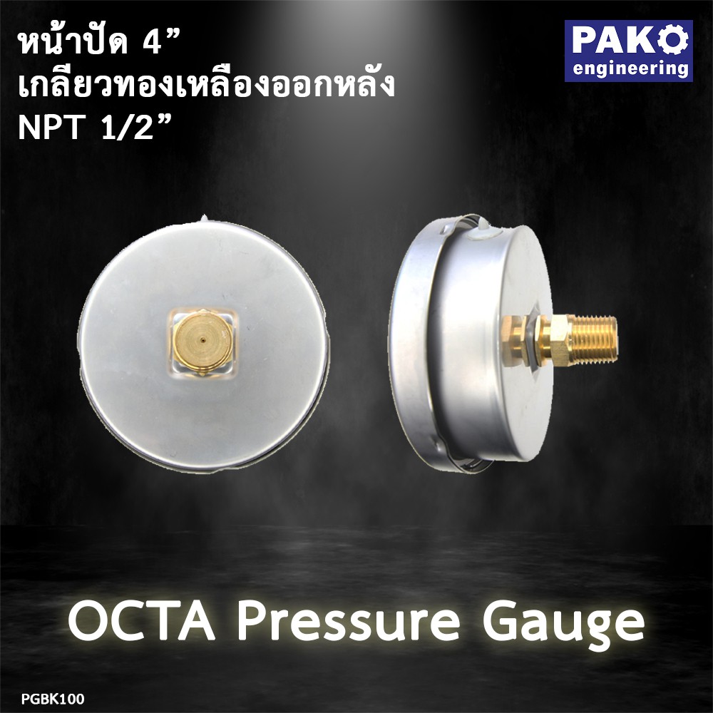 Pressure Gauge เกจวัดลม น้ำ แบบออกหลัง GBK100 ขนาด 4″ เกลียวทองเหลืองขนาด 1/2" NPT [ใบกำกับภาษี]