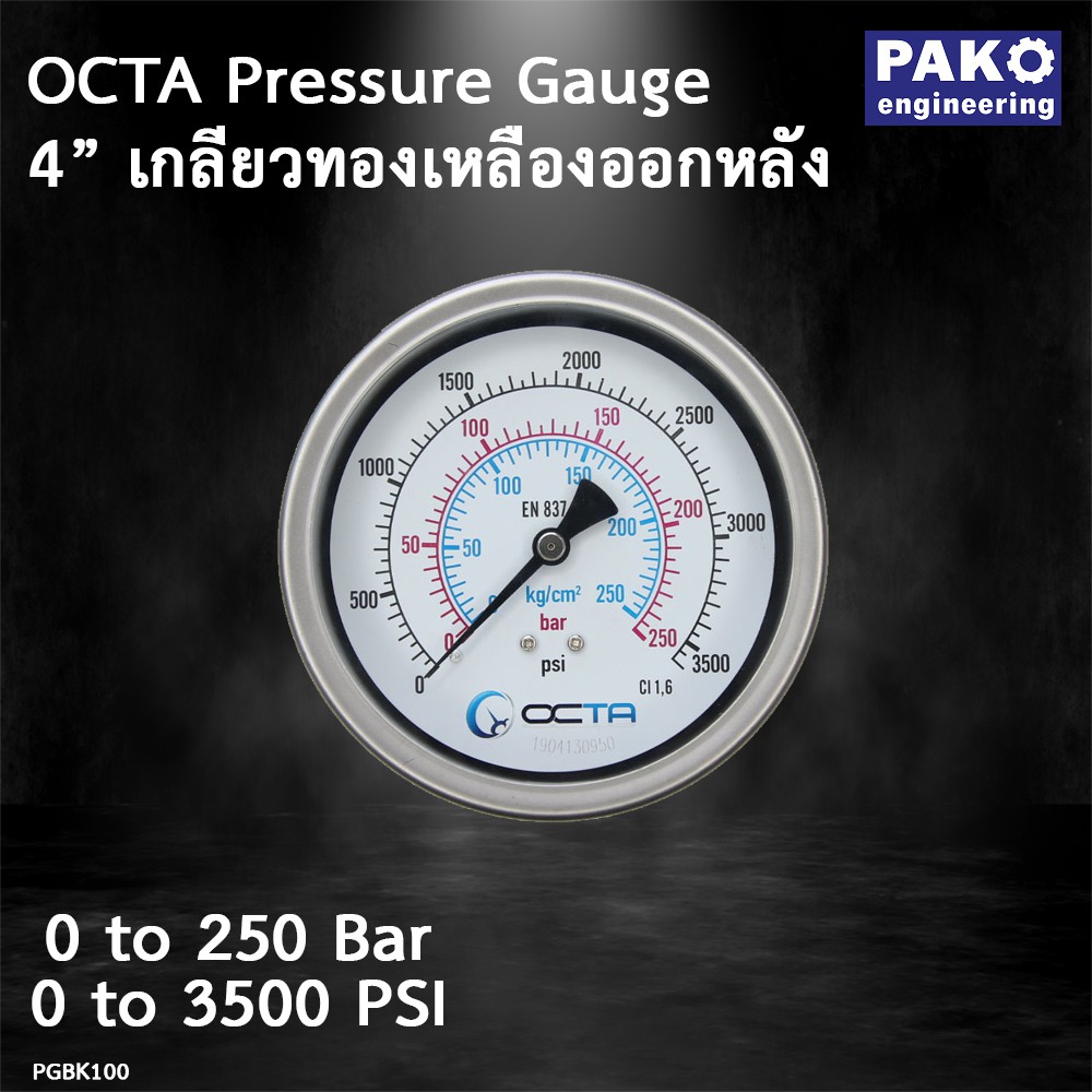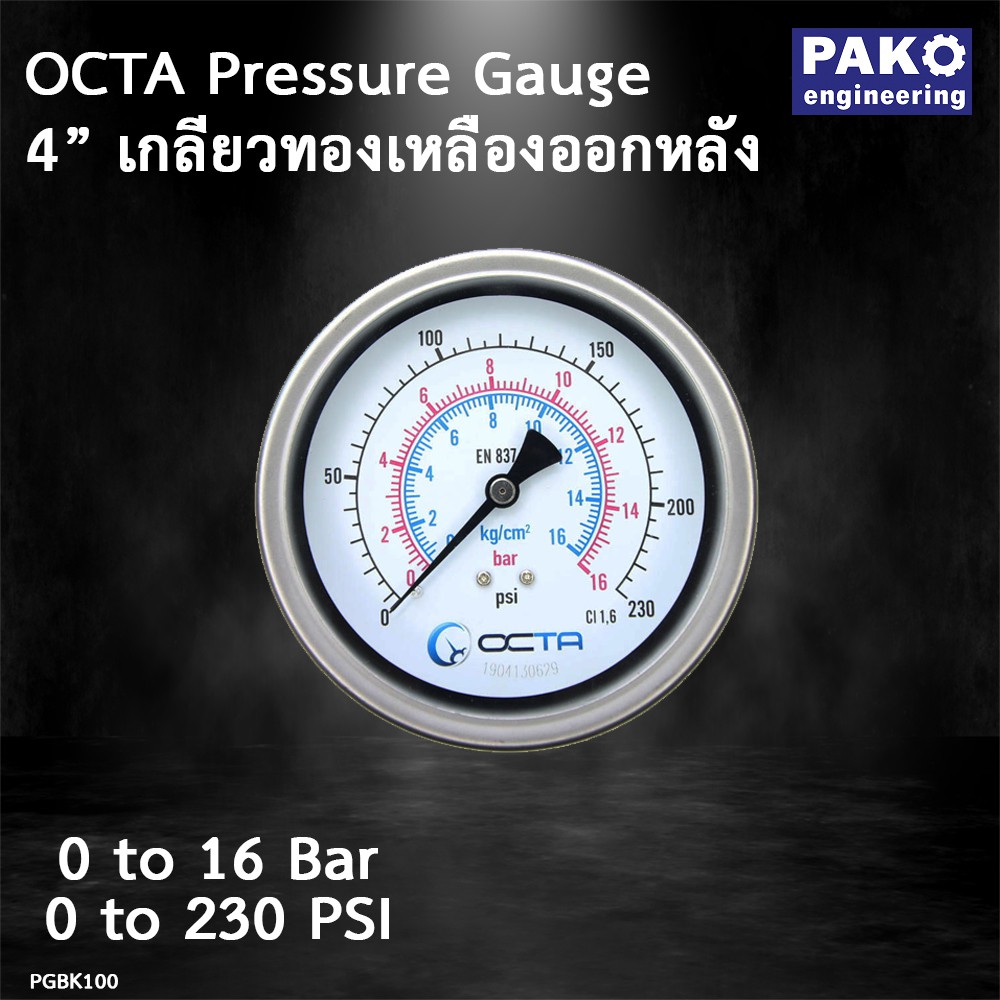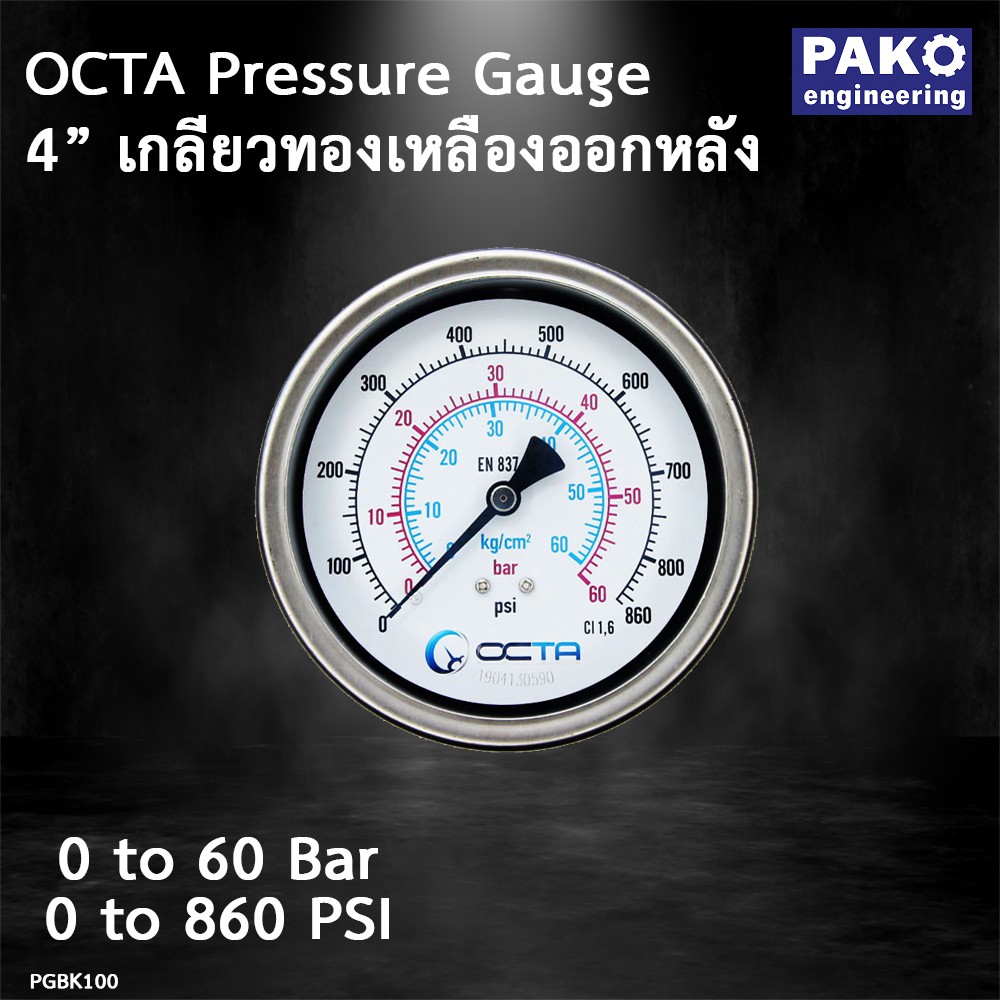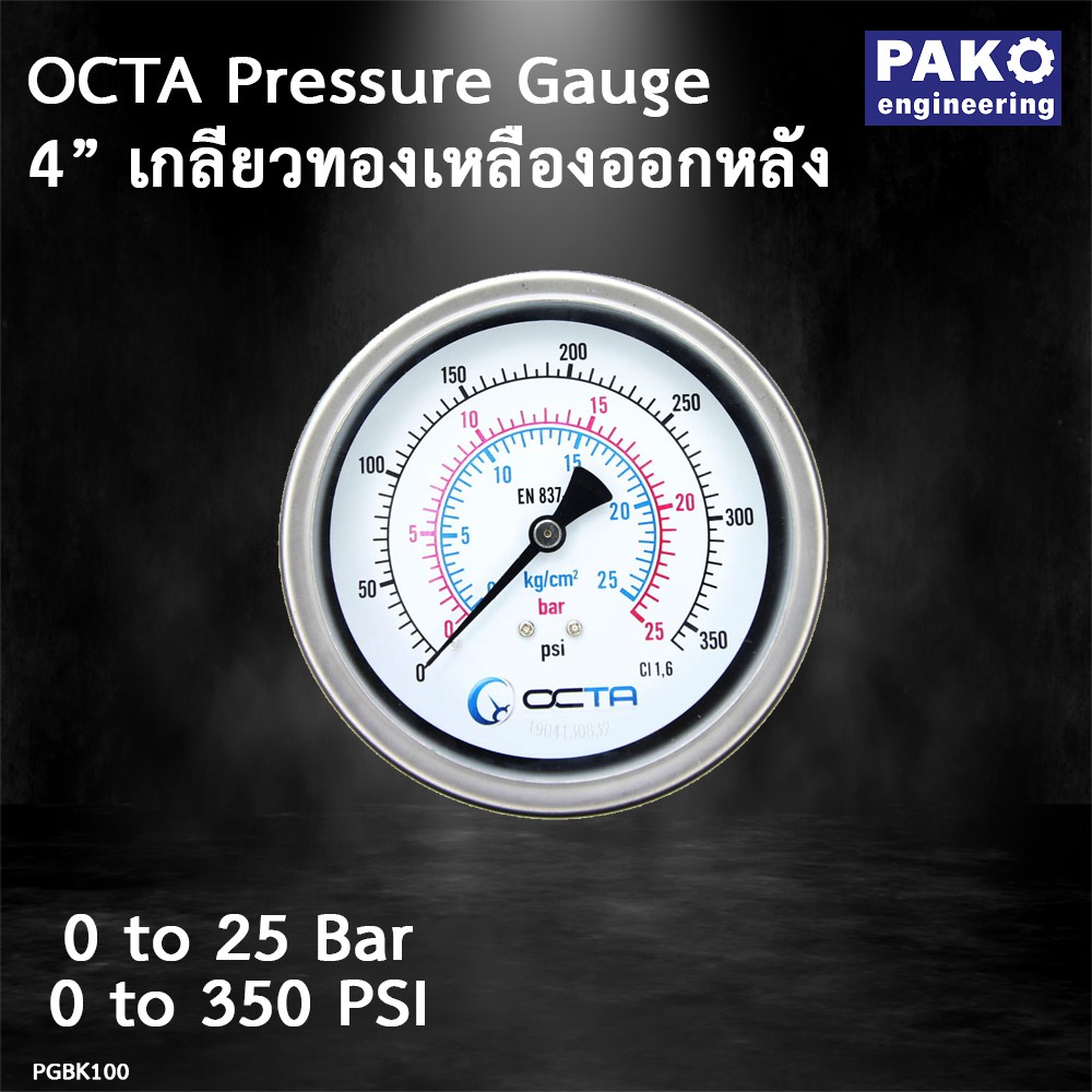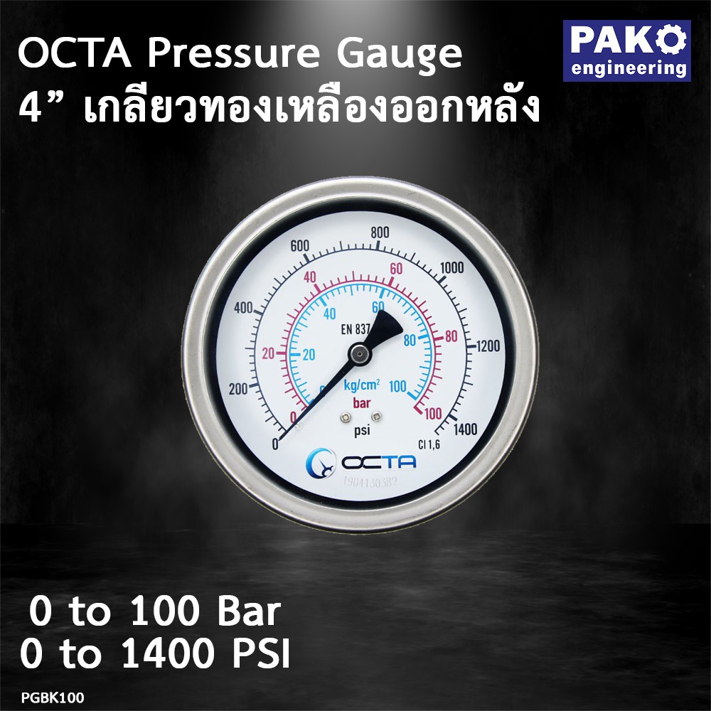 Pressure Gauge เกจวัดลม น้ำ แบบออกหลัง GBK100 ขนาด 4″ เกลียวทองเหลืองขนาด 1/2" NPT [ใบกำกับภาษี]