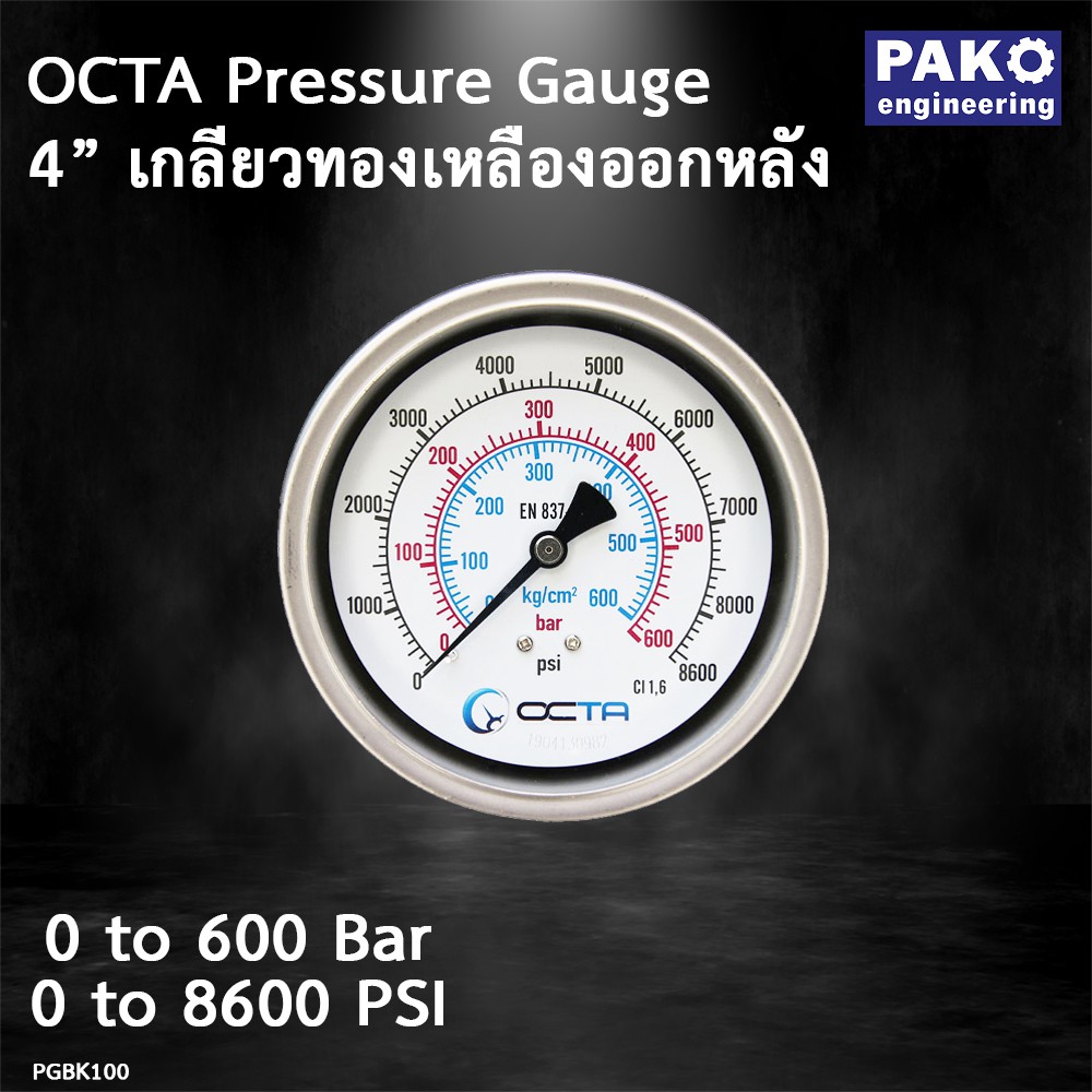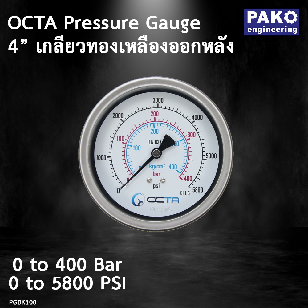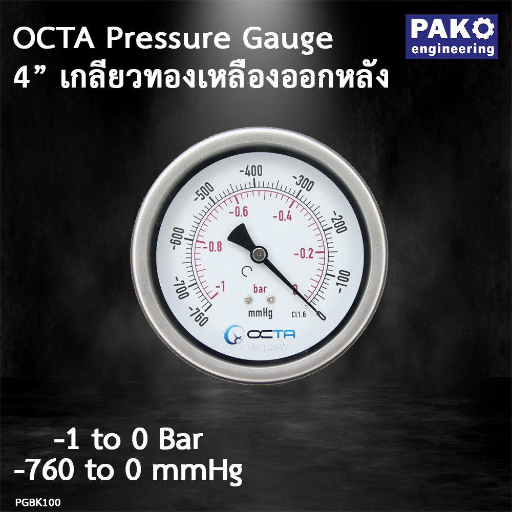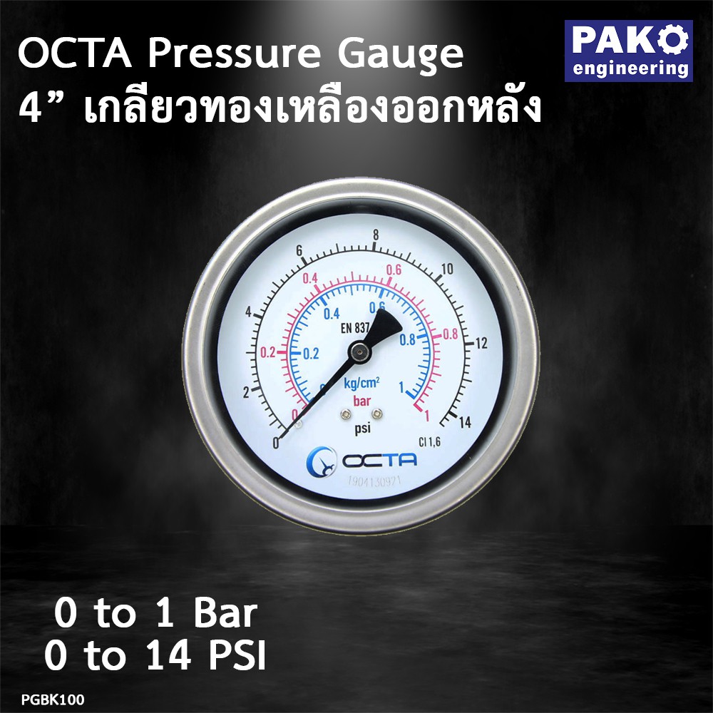 Pressure Gauge เกจวัดลม น้ำ แบบออกหลัง GBK100 ขนาด 4″ เกลียวทองเหลืองขนาด 1/2" NPT [ใบกำกับภาษี]