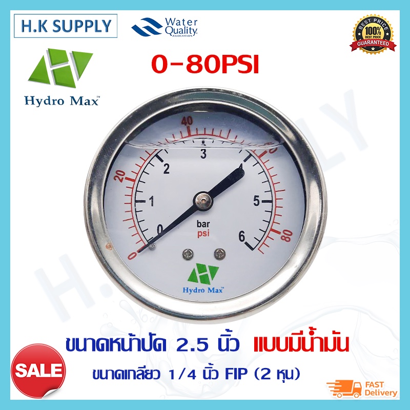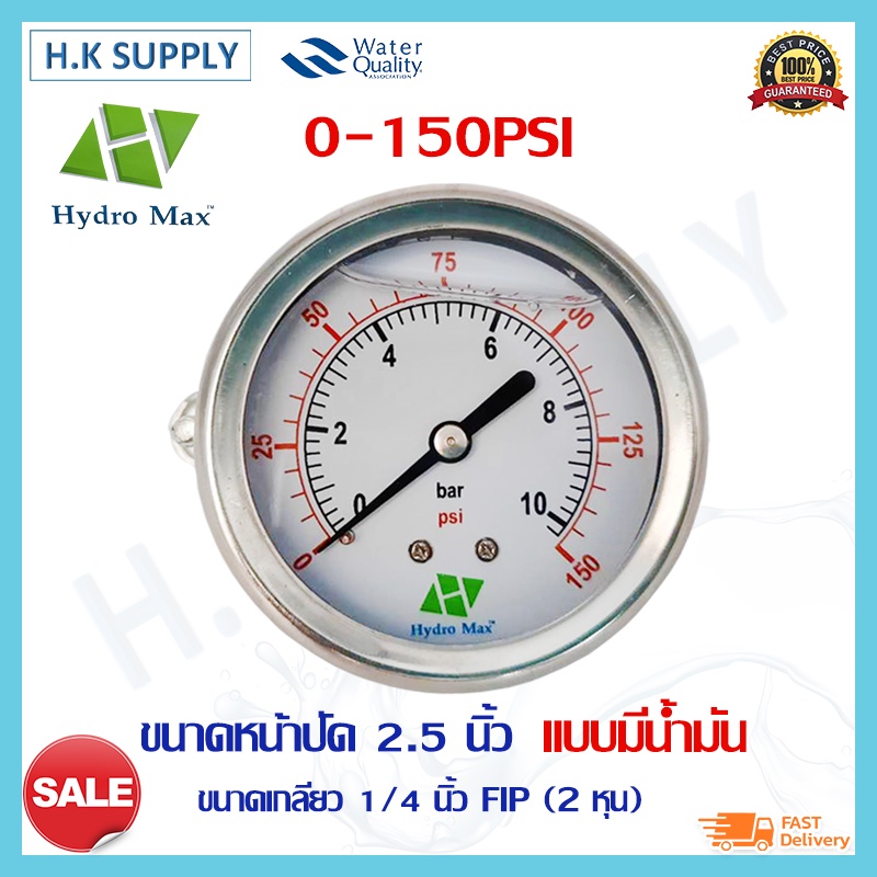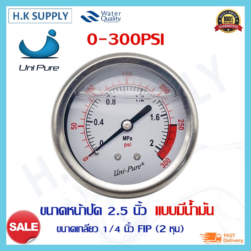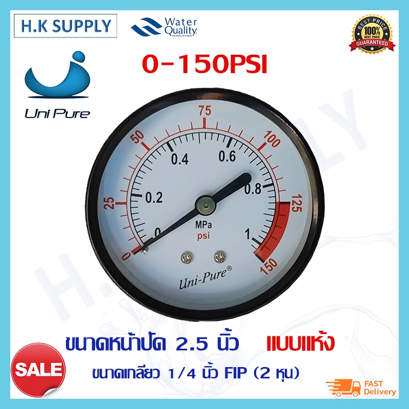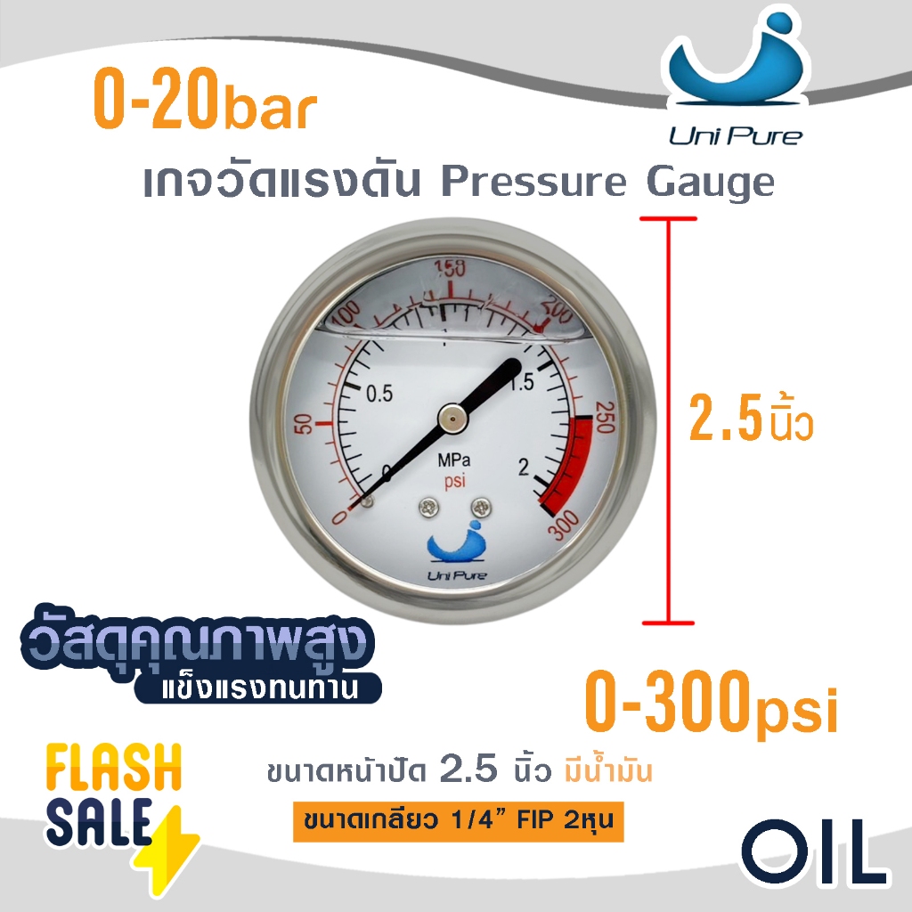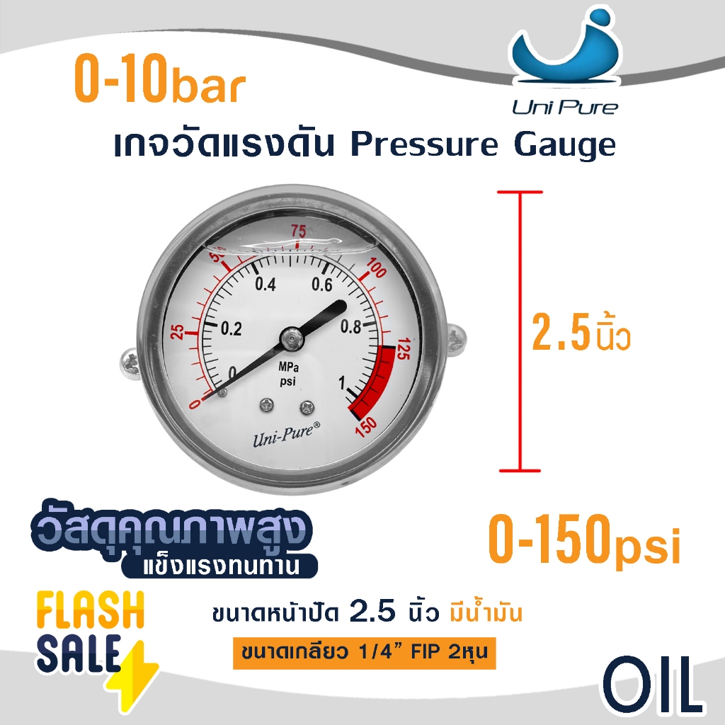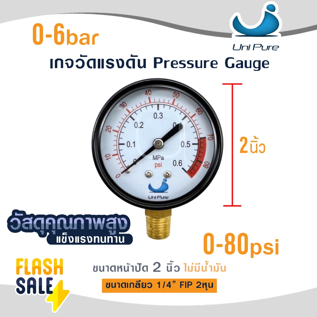 เกจวัดแรงดัน Pressure Gauge แบบแห้ง แบบมีน้ำมัน เกลียวออกล่าง เกลียวออกหลัง 1/4 6-20 บาร์ PSI Unipure Hydromax Treatton