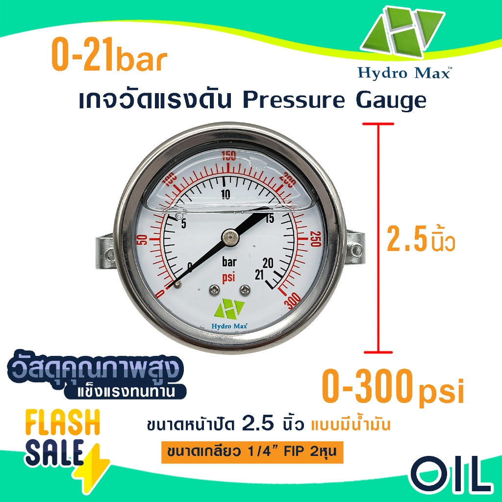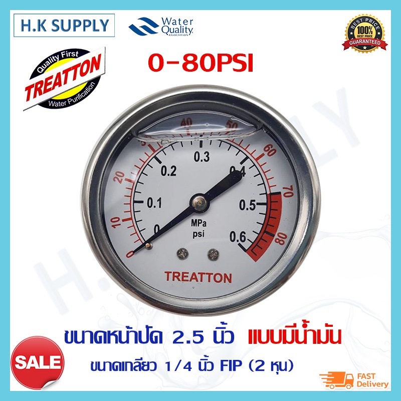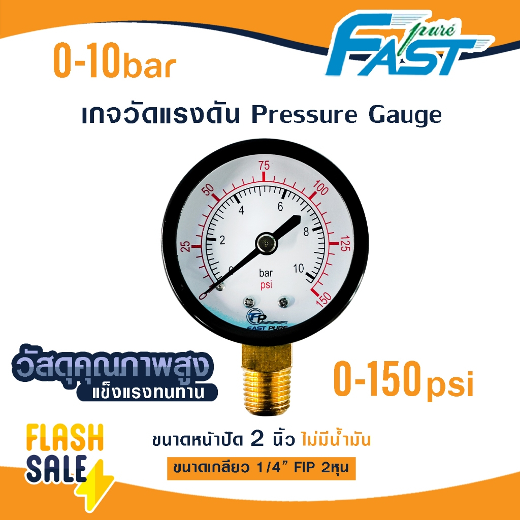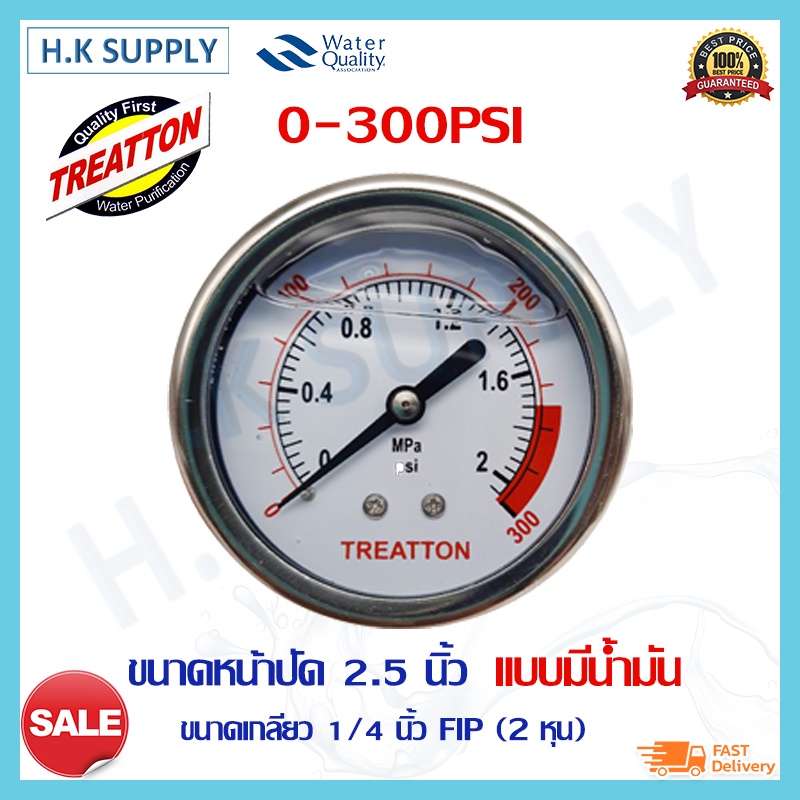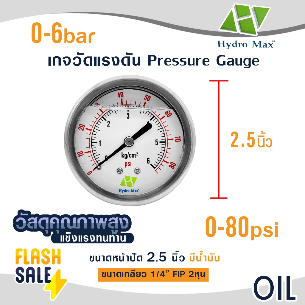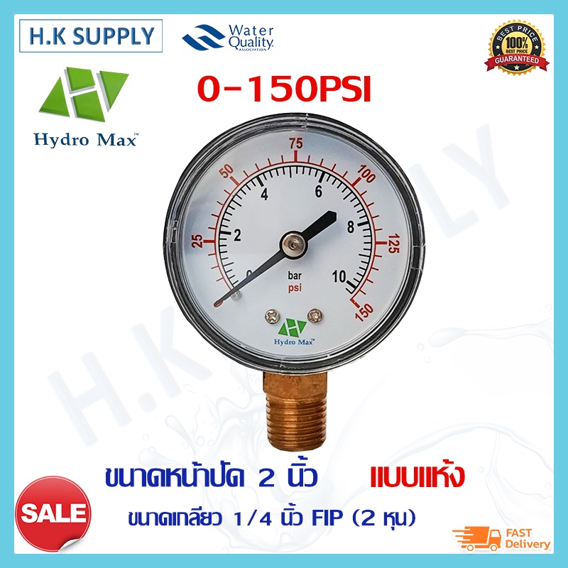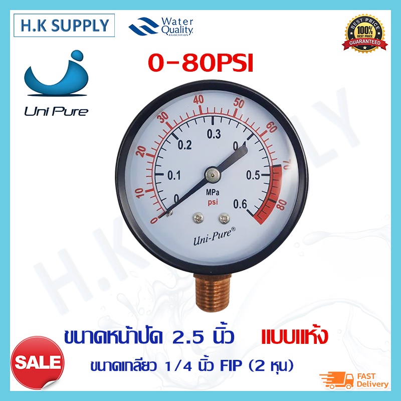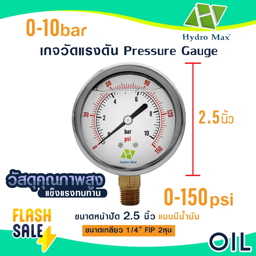 เกจวัดแรงดัน Pressure Gauge แบบแห้ง แบบมีน้ำมัน เกลียวออกล่าง เกลียวออกหลัง 1/4 6-20 บาร์ PSI Unipure Hydromax Treatton