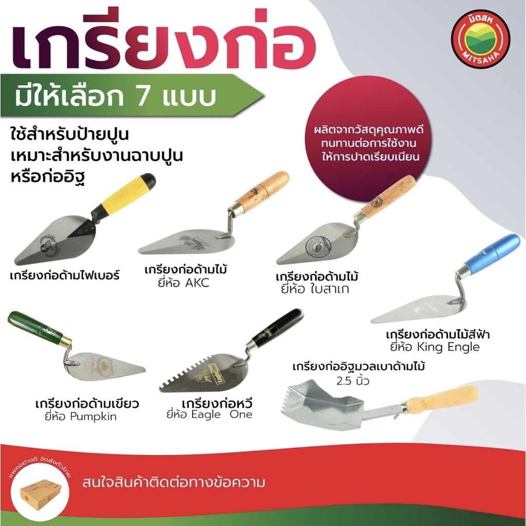 เกรียง ก่อ ปูน หวี อิฐมวลเบา บลูเทค พัมคิน อีเกิ้ลวัน สามเหลี่ยม BRICKLAYING TROWEL เกียง สแตนเลส ด้ามไม้ ไฟเบอร์ มิตสห