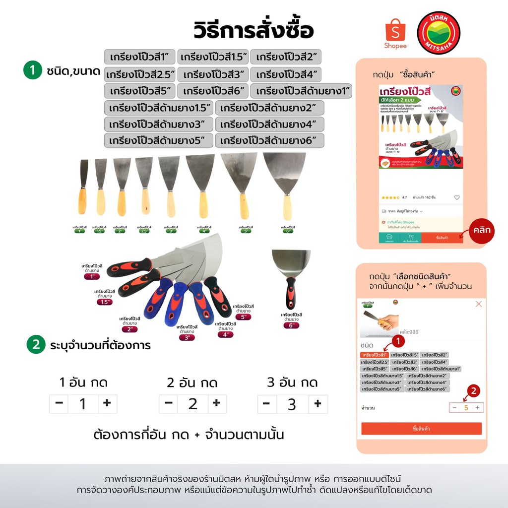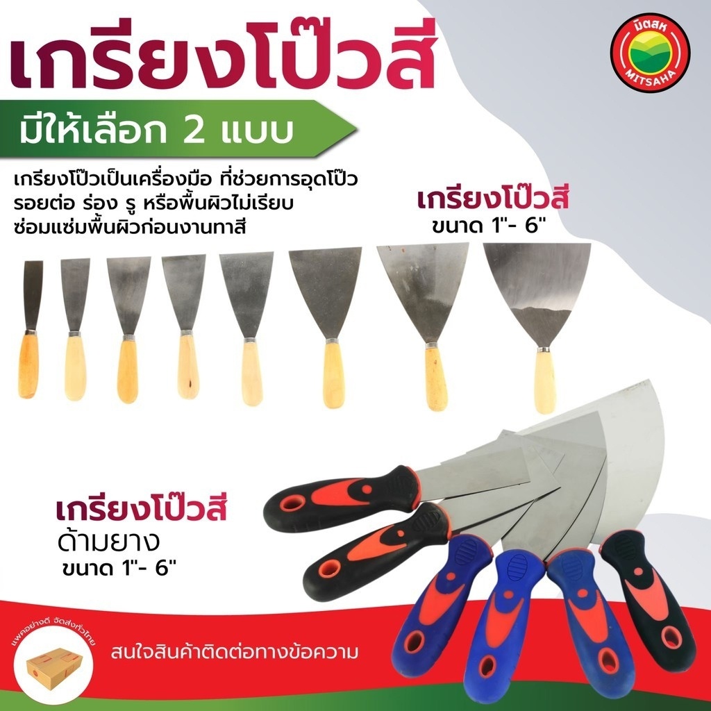 เกรียง โป๊ว สี ด้าม ไม้ ยาง 1นิ้ว,1.5นิ้ว,2นิ้ว,2.5นิ้ว,3นิ้ว,4นิ้ว,5นิ้ว,6นิ้ว PAINT SCRAPER สแตนเลส เกียง โป้ว มิตสห