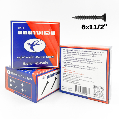 เกลียวปล่อยยิงฝ้า สีดำ ตรานกนางแอ่น (กล่อง 6 ขีด)(ราคารวมแวท) ฝ้า เพดาน งานช่าง