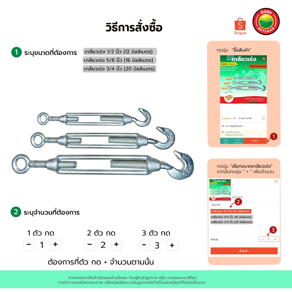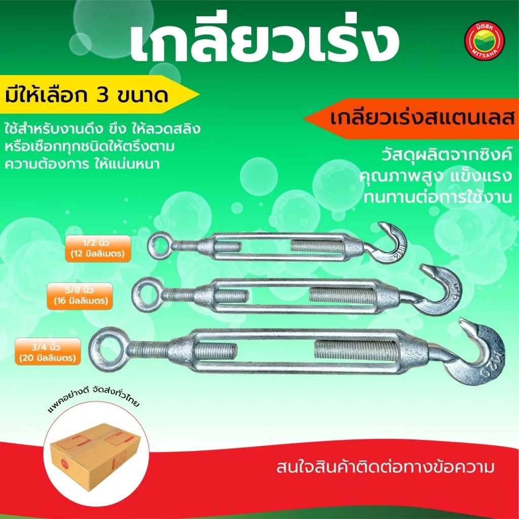 เกลียวเร่ง สแตนเลส 1/2",5/8",3/4" EYE&HOOK TURNBUCKLES ตะขอปรับระดับ ขึง ปรับ ตึง ดึง จับ ยึด สาย ลวด สลิง มิตสห Mitsaha