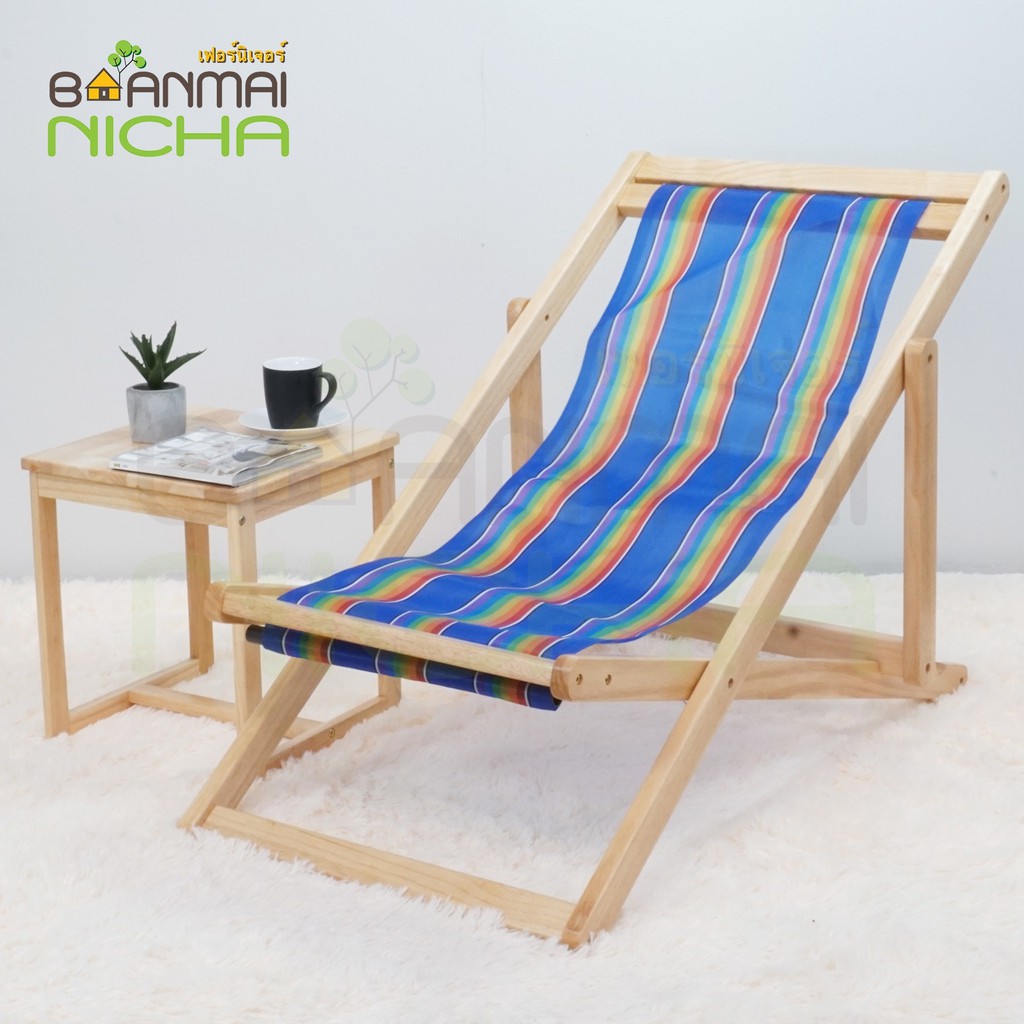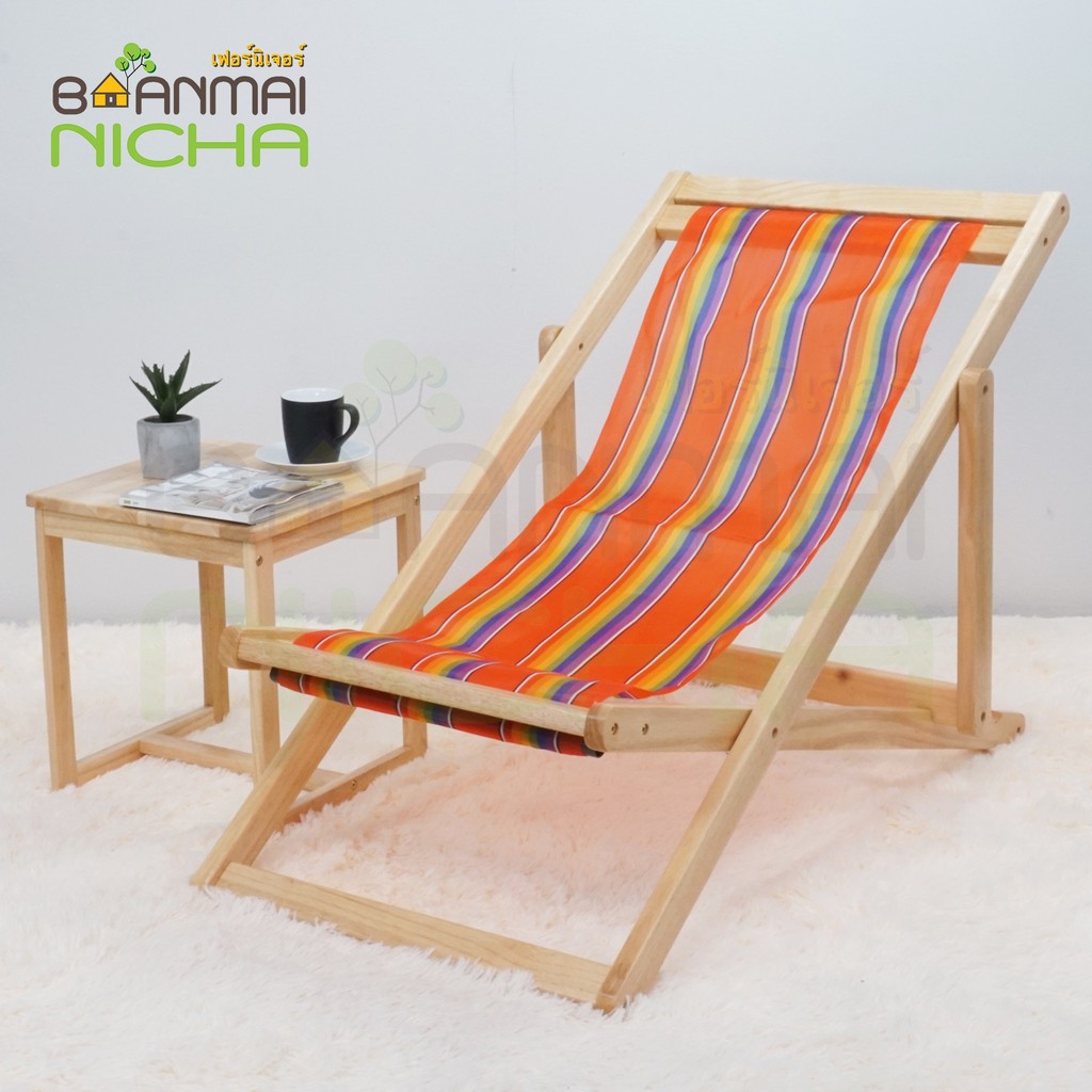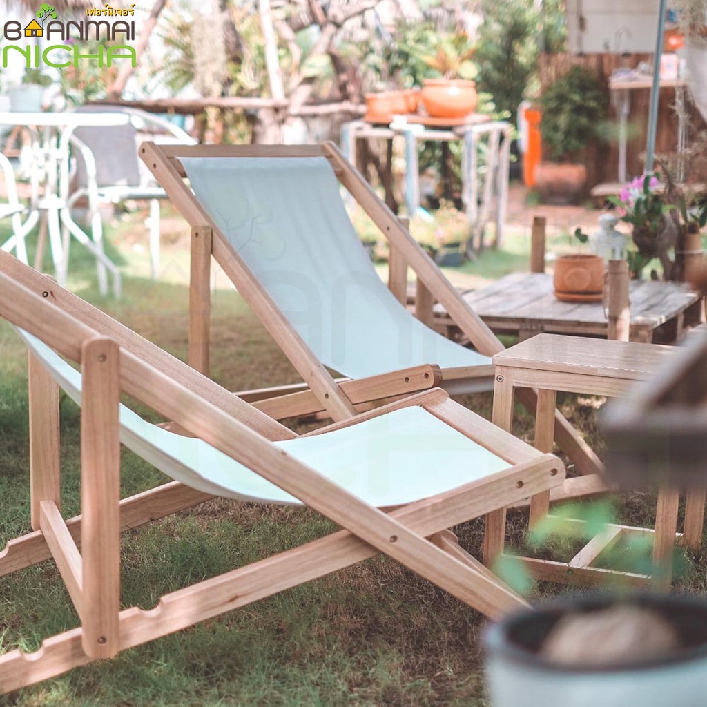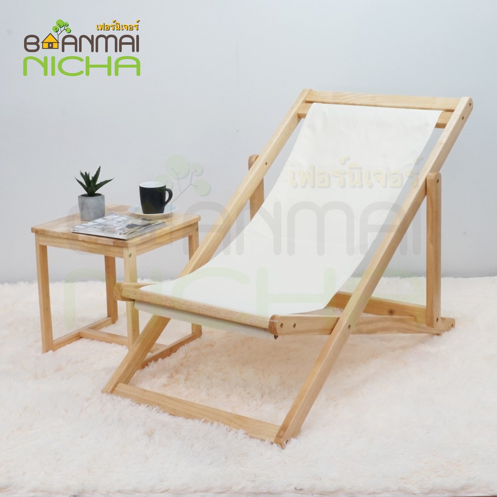 เก้าอี้ชายหาด เตียงชายหาด ไม้ยางพารา เกรดพรีเมี่ยม (ซื้อ 2 ตัวแถมโต๊ะ) Size: 64x100x89 .Baanmainicha
