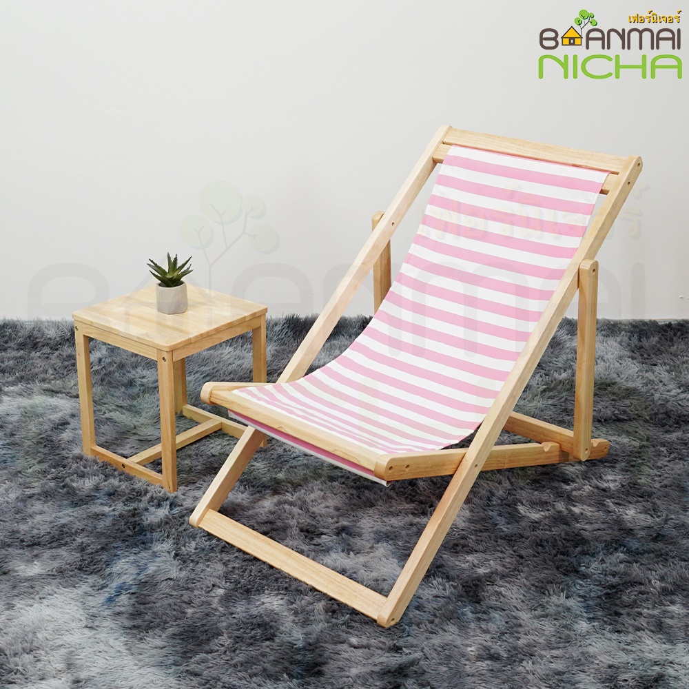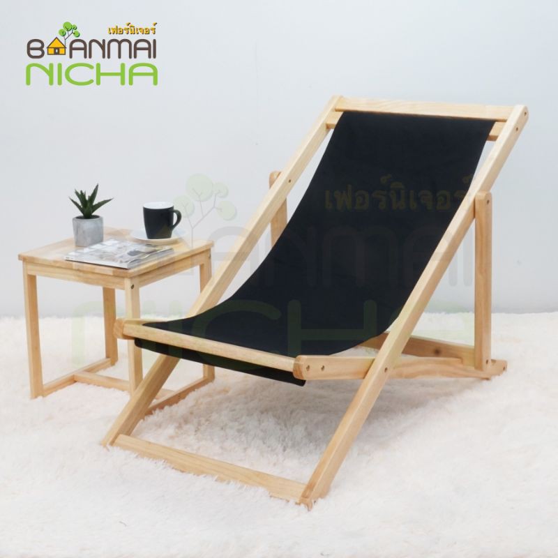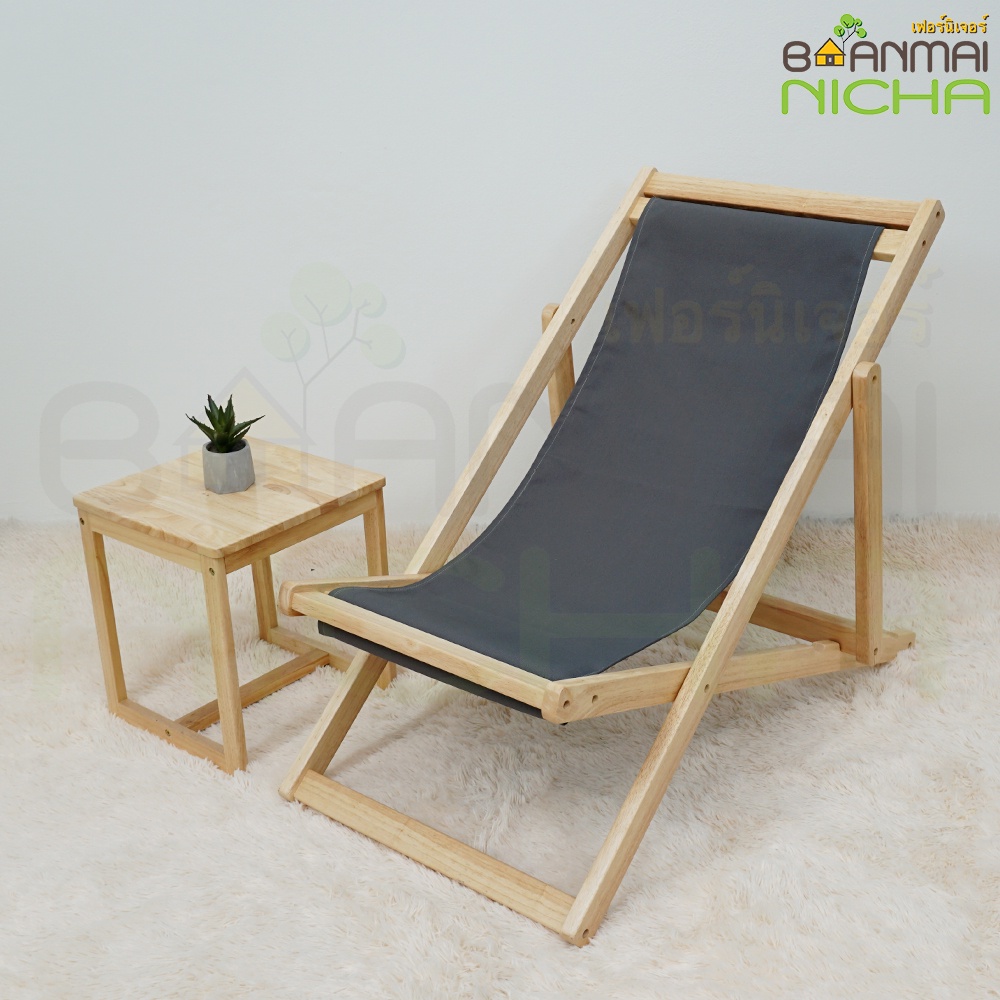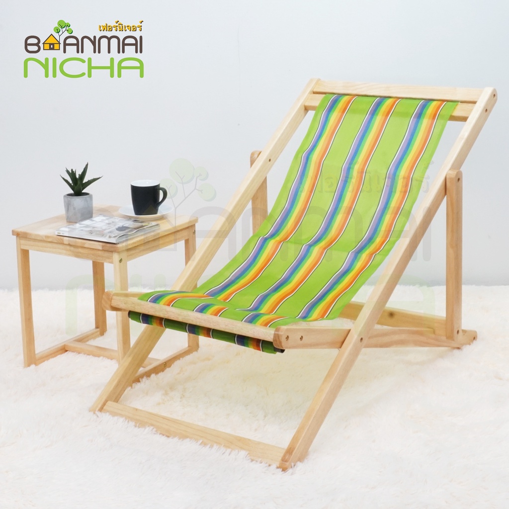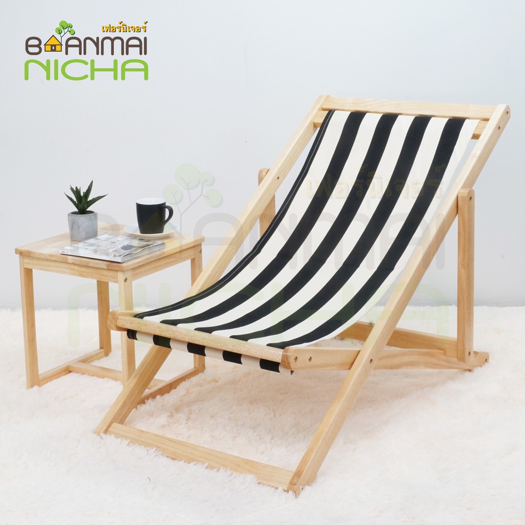 เก้าอี้ชายหาด เตียงชายหาด ไม้ยางพารา เกรดพรีเมี่ยม (ซื้อ 2 ตัวแถมโต๊ะ) Size: 64x100x89 .Baanmainicha