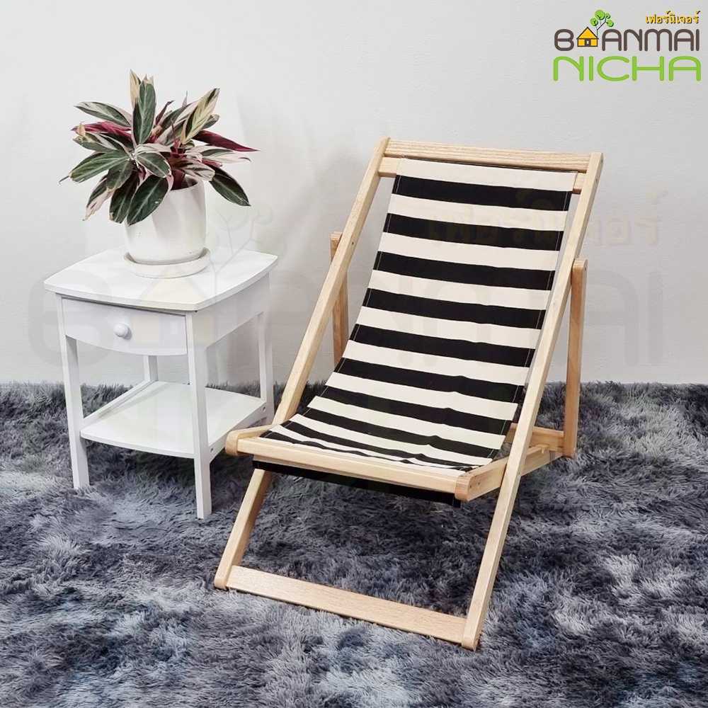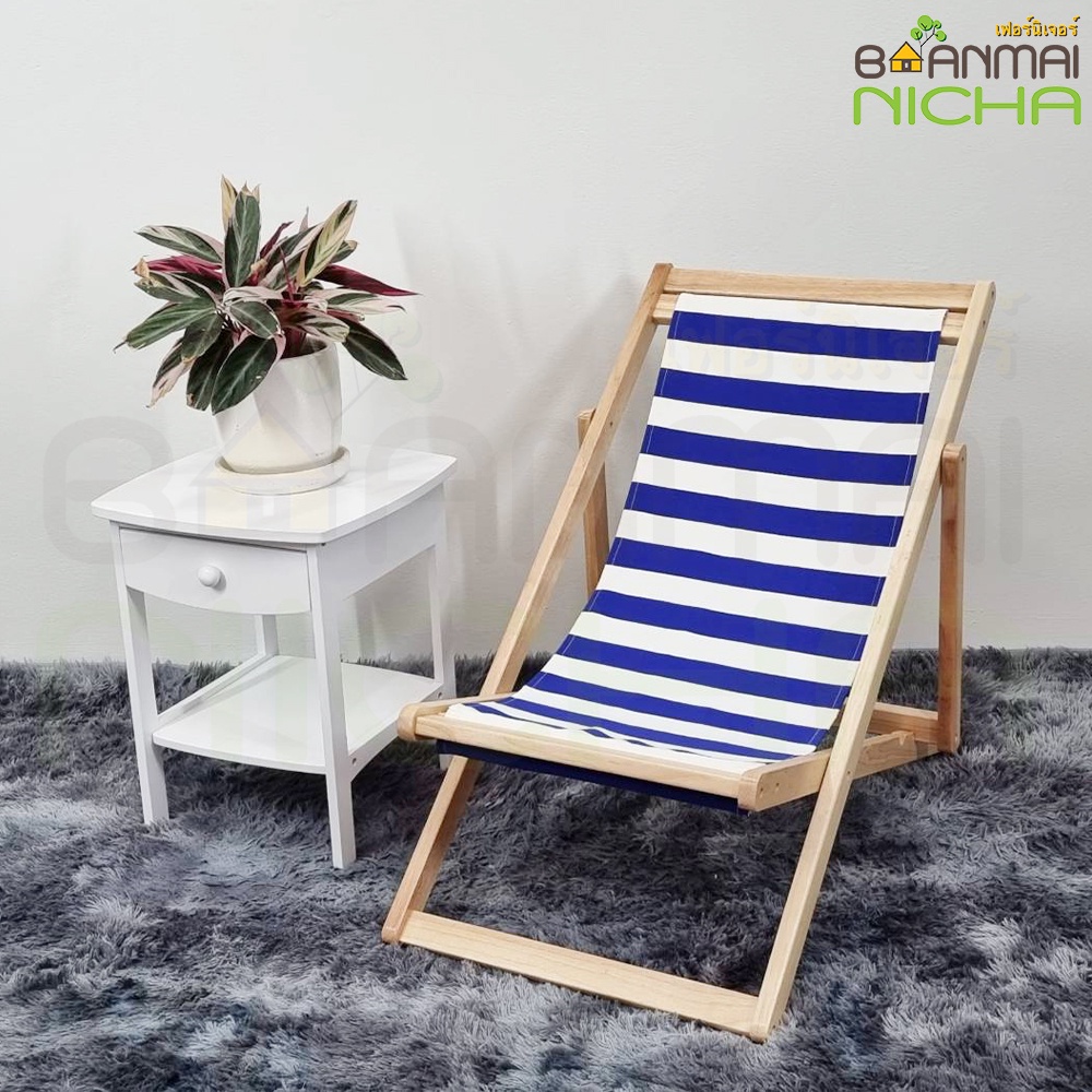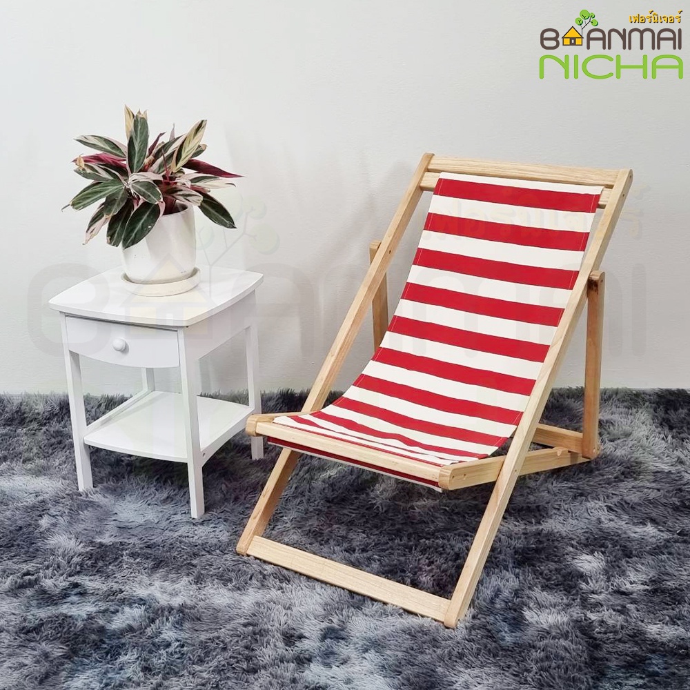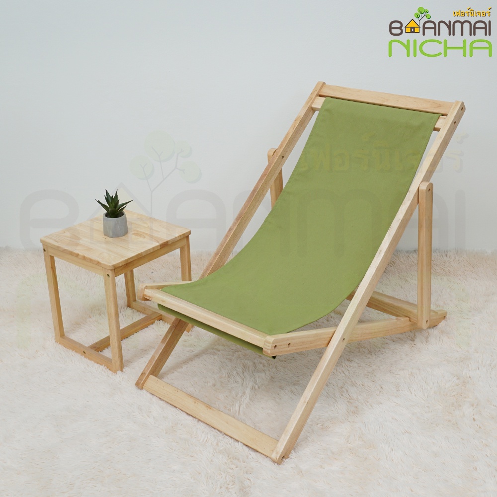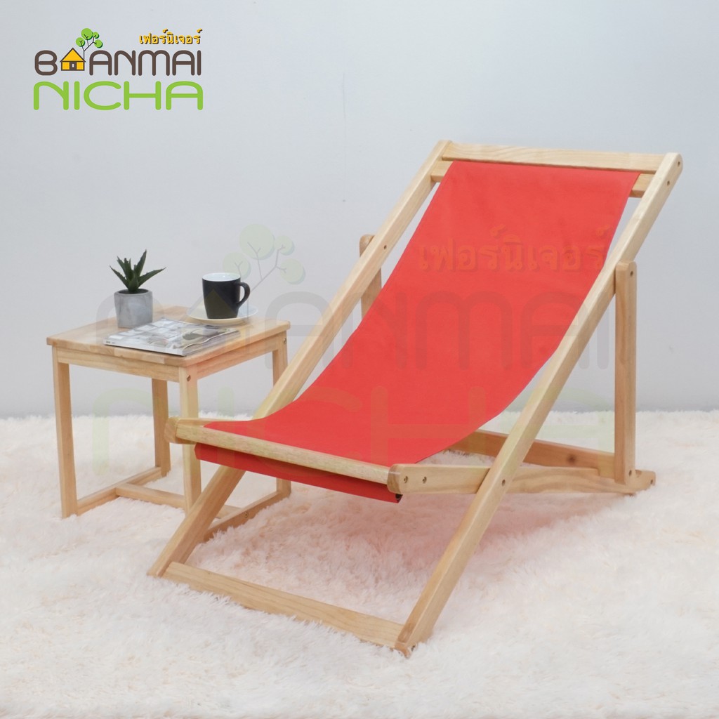 เก้าอี้ชายหาด เตียงชายหาด ไม้ยางพารา เกรดพรีเมี่ยม (ซื้อ 2 ตัวแถมโต๊ะ) Size: 64x100x89 .Baanmainicha