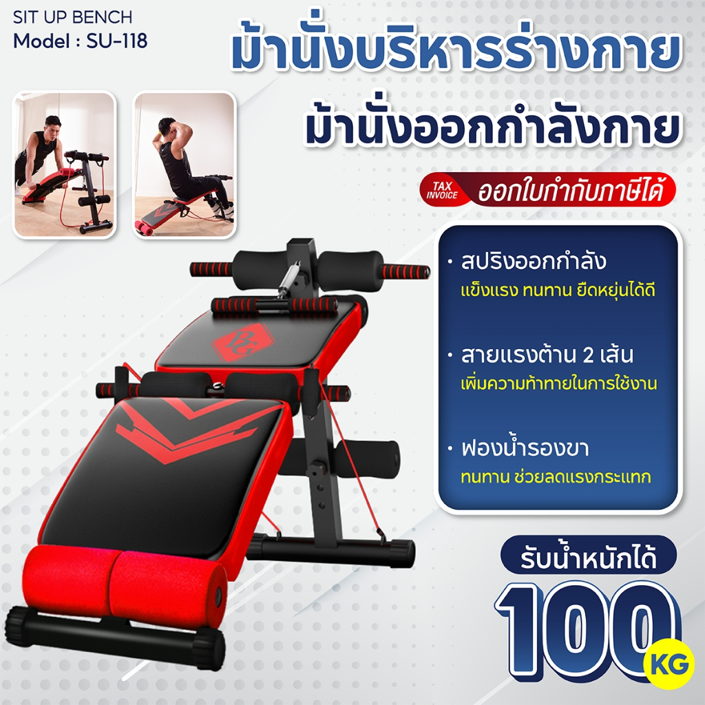 BG เก้าอี้ซิทอัพ ม้าซิทอัพ เบาะซิทอัพ ม้าเล่นหน้าท้อง พร้อมสายแรงต้าน Sit Up Bench รุ่น SU118