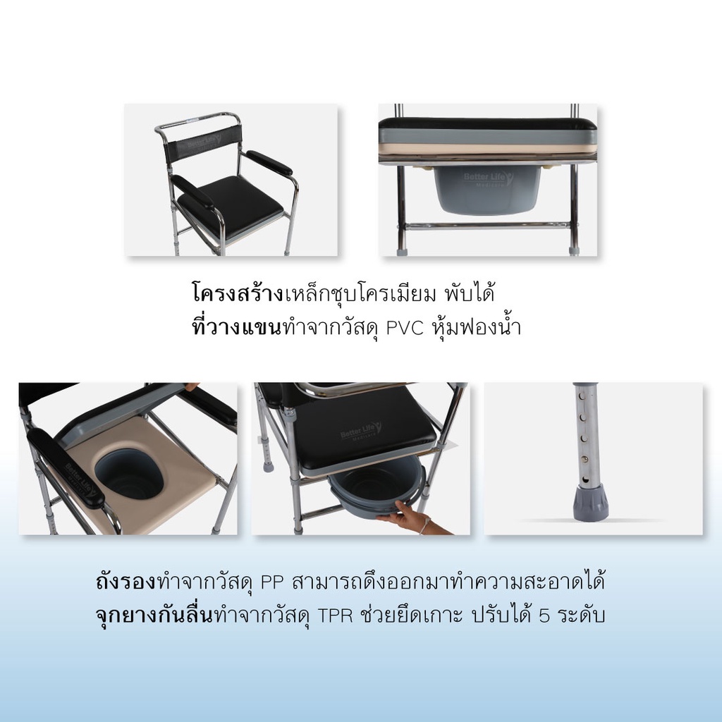 เก้าอี้นั่งถ่ายเหล็กชุบโครเมียม แข็งแรง พับได้