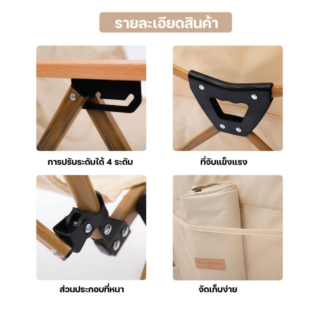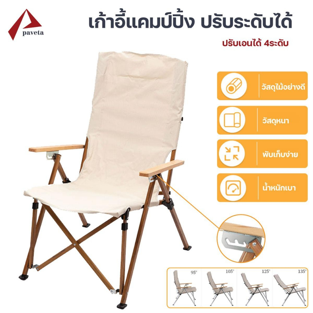 เก้าอี้สนาม เก้าอี้ปิคนิค ปรับได้4ระดับ ขาตั้งอลูมิเนียมลายไม้ / Paveta