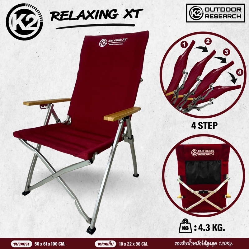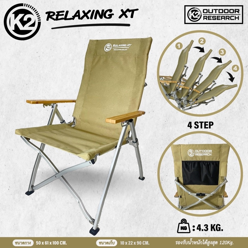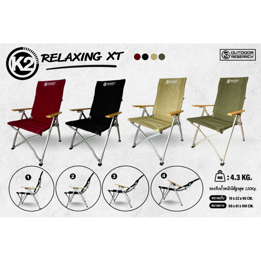 เก้าอี้สนาม K2 Relaxing XT (New!!) สามารถปรับเอนได้ 4ระดับ มีของพร้อมส่ง เก้าอี้แคมป์ปิ้ง