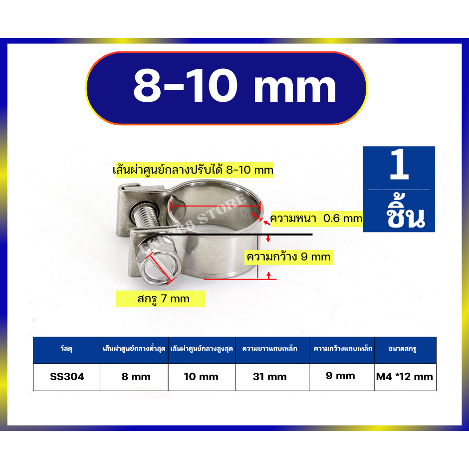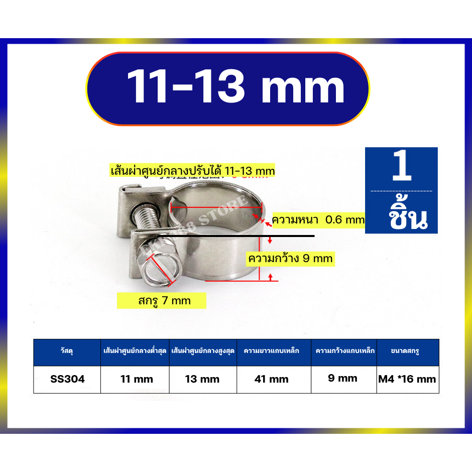 เข็มขัดรัดสาย แคล้มรัดท่อ สายรัดท่อสแตนเลส 304 ขนาด 6-34 มิล