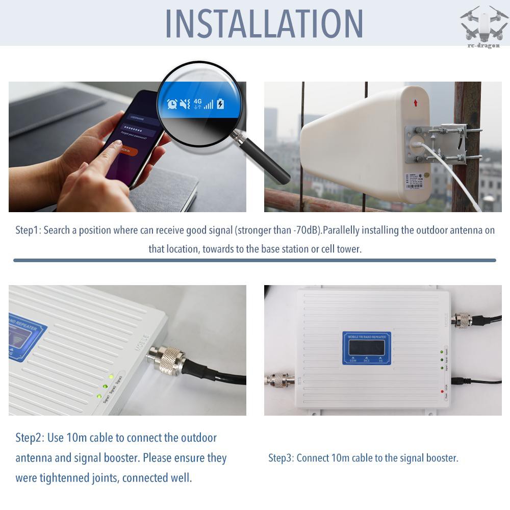 เครื่องขยายสัญญาณ 110-220 V Tri Band 900 1800 2100 Gsm Dcs Wcdma 2G, 3G, 4G Lte อุปกรณ์เสริมสำหรับคอมพิวเตอร์