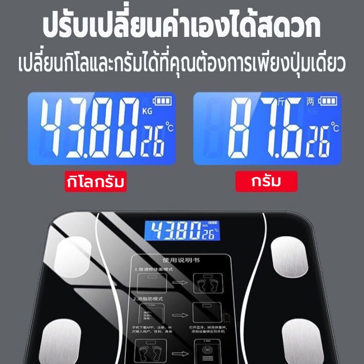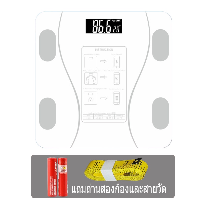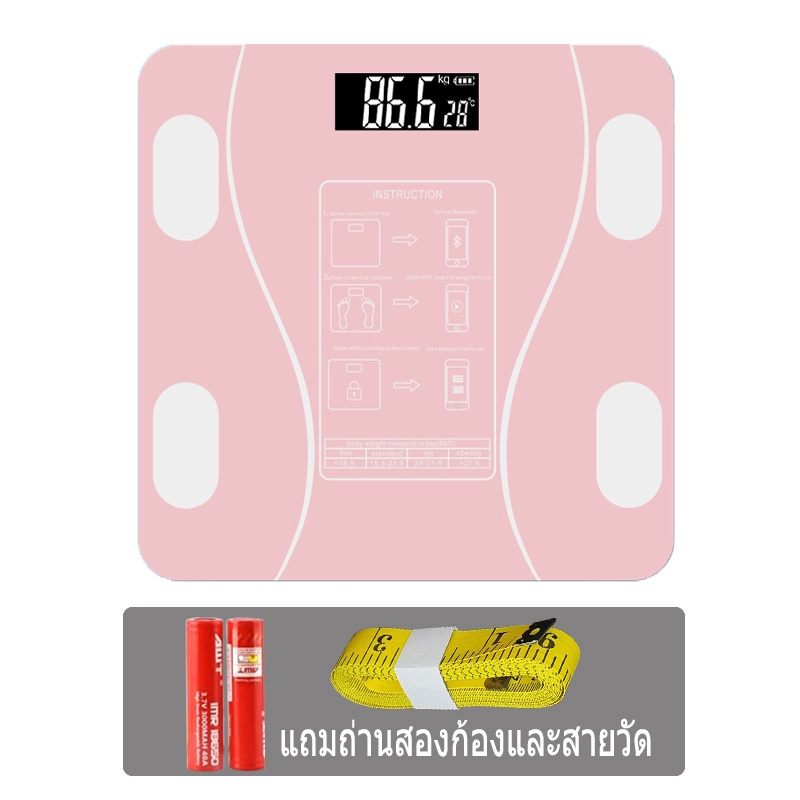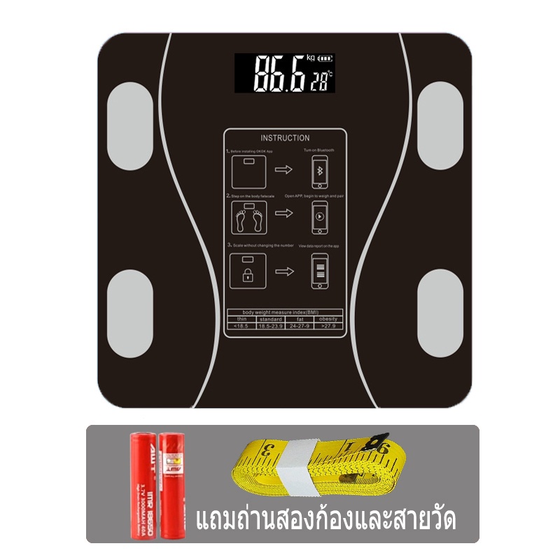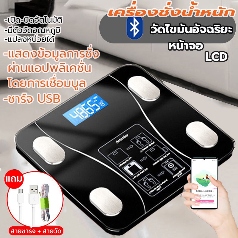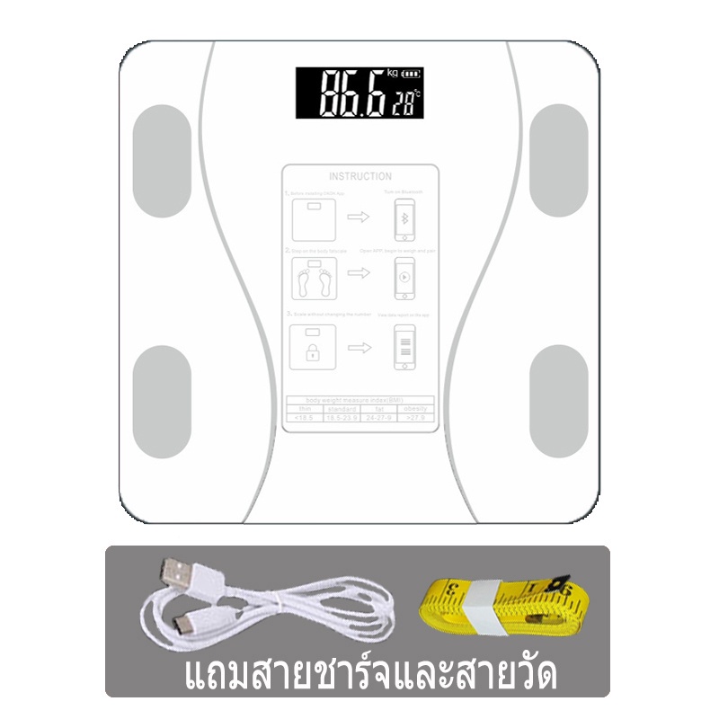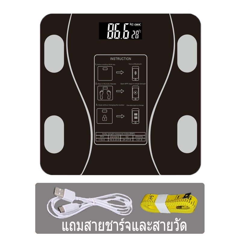 เครื่องชั่งน้ำหนักอัจฉริยะ เครื่องชั่งดิจิตอล ชาร์จUSB วัดไขมัน มวลน้ำ มวลกระดูก กล้ามเนื้อ ไขมันในช่องท้อง 0.1-180kg