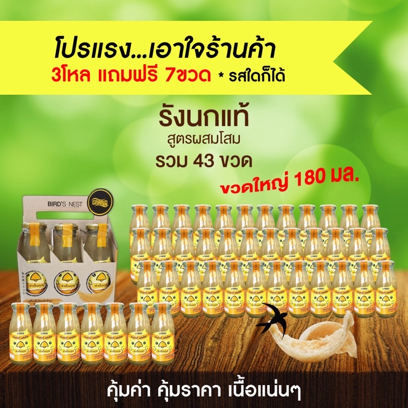 เครื่องดื่มรังนกแท้แกรนด์ ส่งฟรีทั่วประเทศ❗️ทั้งลดทั้งแถม 3โหลแถมฟรี 7 ขวด ได้ทั้งหมด 43 ขวด ตราแกรนด์ ปริมาณ 180 มล.