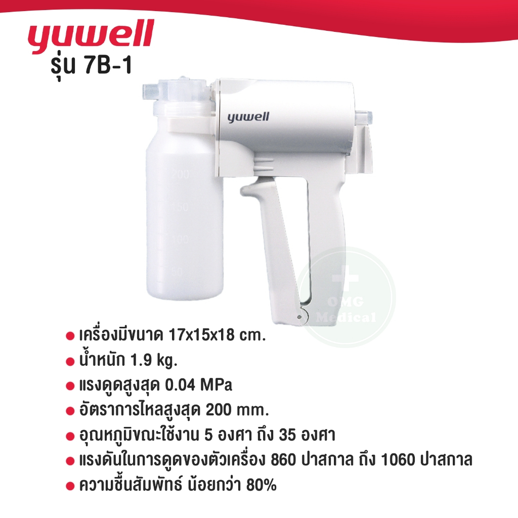 เครื่องดูดเสมหะพกพา แบบมือบีบ Manual suction apparatus Yuwell รุ่น 7B-1 Manual Suction เครื่องซักชั่น ดูดน้ำมูก ดูดเสมหะ