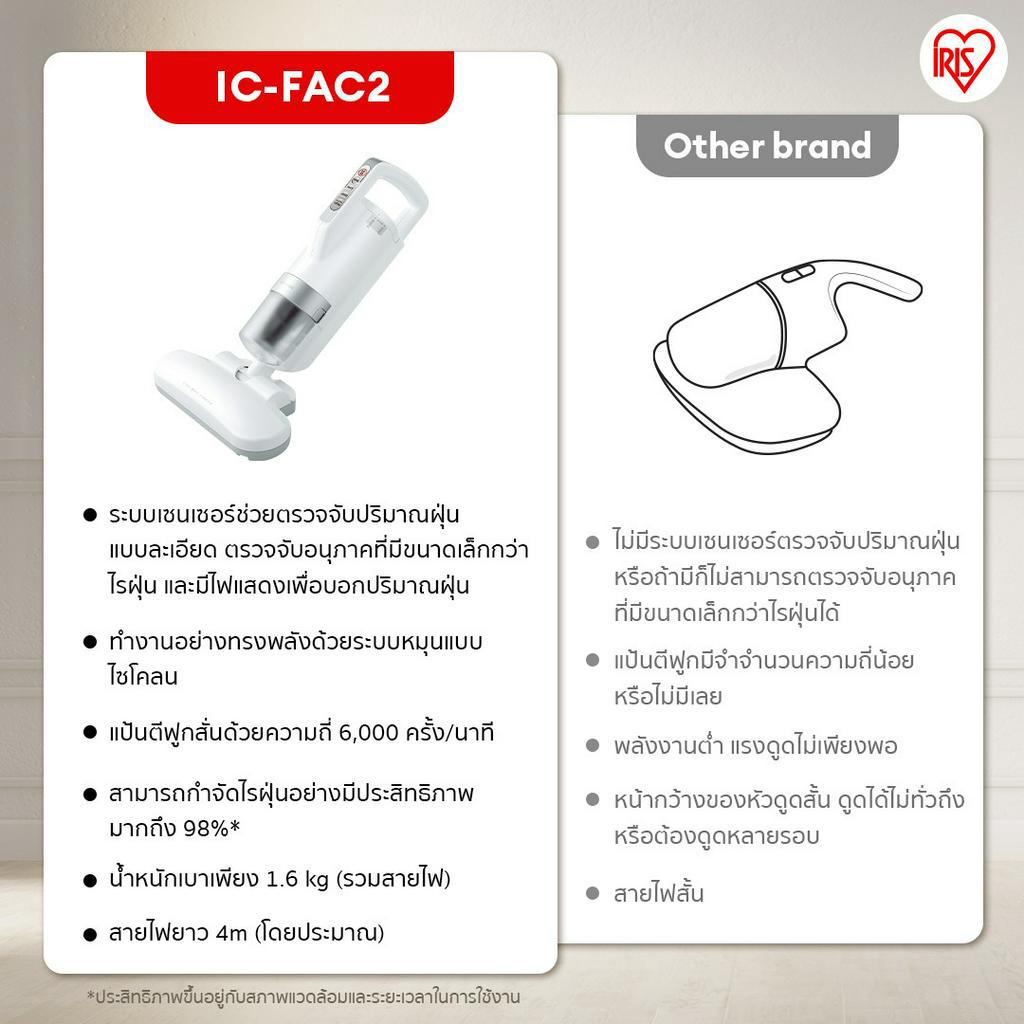 [2 Years Warranty] IRIS OHYAMA ไอริส โอยามะ เครื่องดูดไรฝุ่น กำจัดไรฝุ่น รุ่น IC-FAC2 หัวดูดใหญ่ แรงสั่นตีฟูกมาก