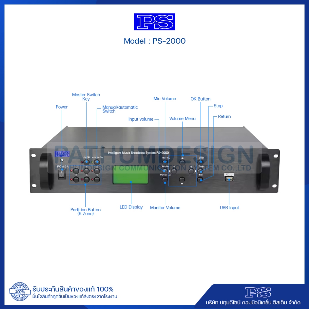 เครื่องตั้งเวลาโรงเรียน โรงงานอัตโนมัติแบบเสียง MP3 รุ่น PS-2000USB