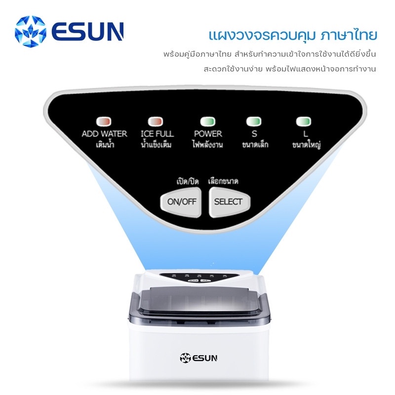 [รับประกันศูนย์ 1 ปี] ESUN Ice Maker อีซัน เครื่องทำน้ำแข็งอัตโนมัติ ทรงหัวกระสุน รุ่น EIM-15A