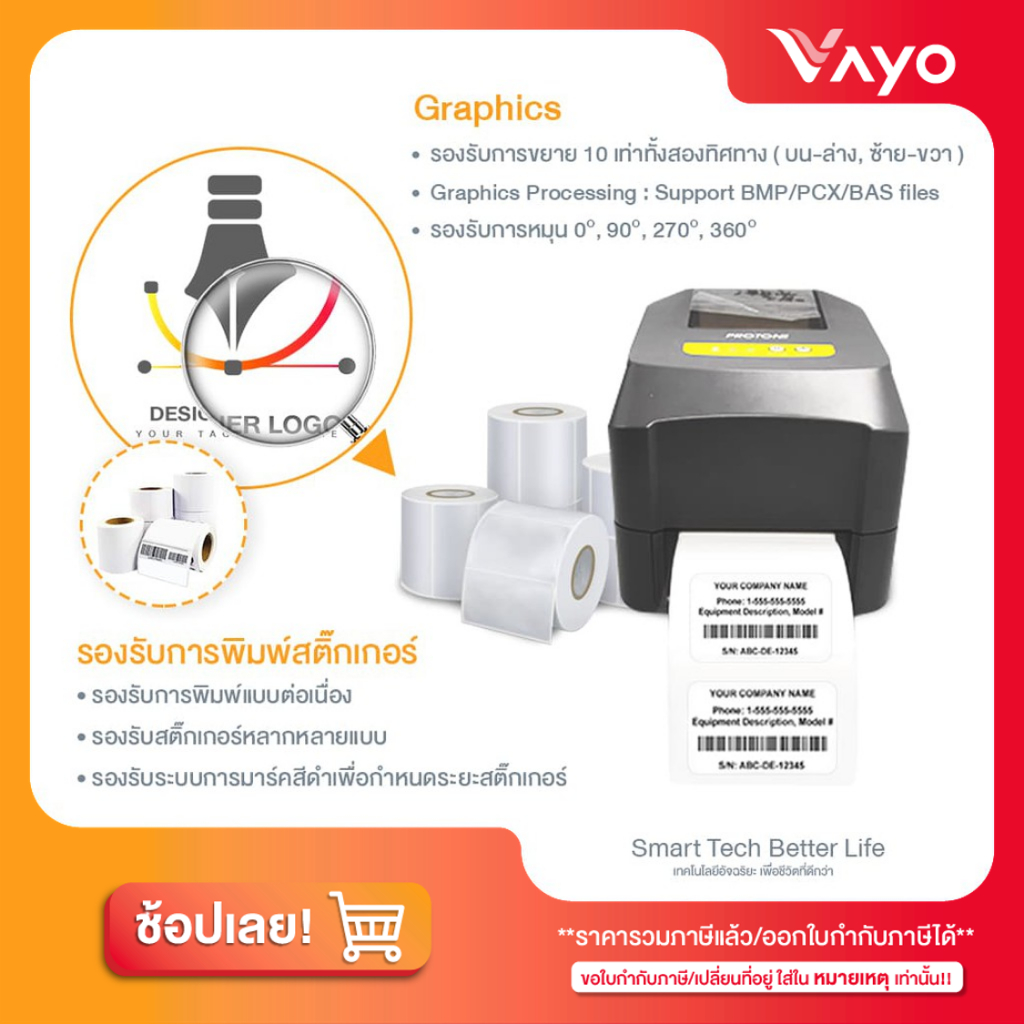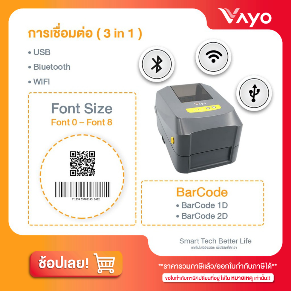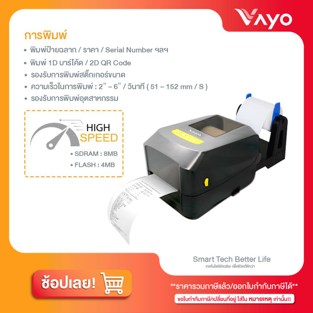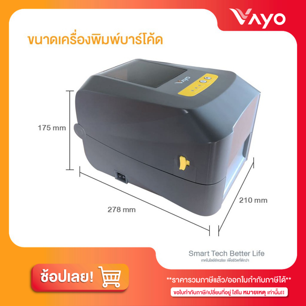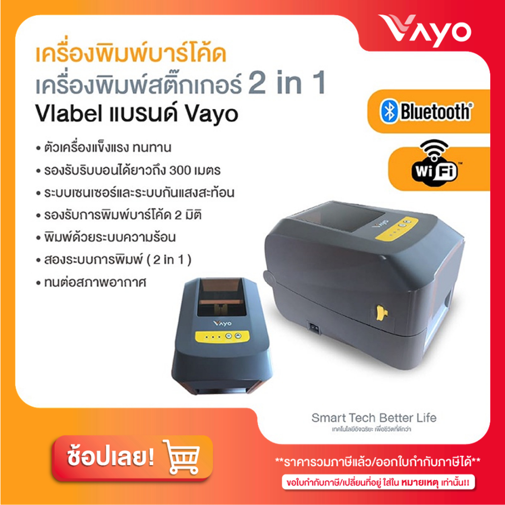 เครื่องพิมพ์ลาเบล Vayo Vlabel พิมพ์สติกเกอร์ ฉลากระบบความร้อน ริบบอน มี WiFi Bluetooth USB