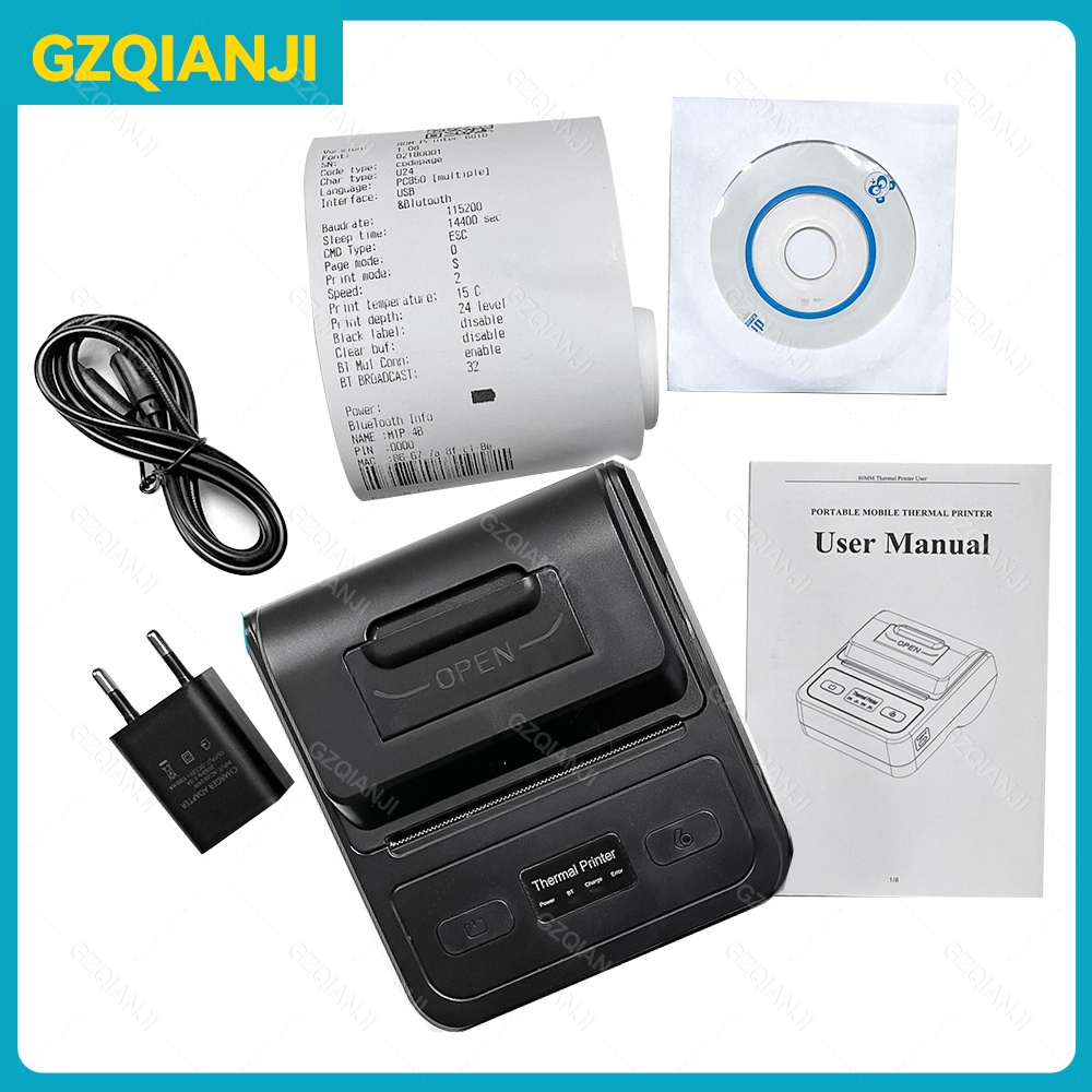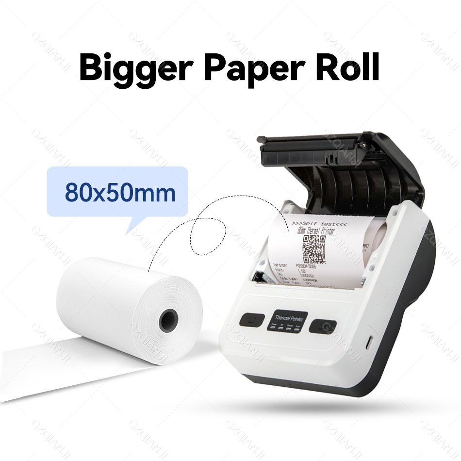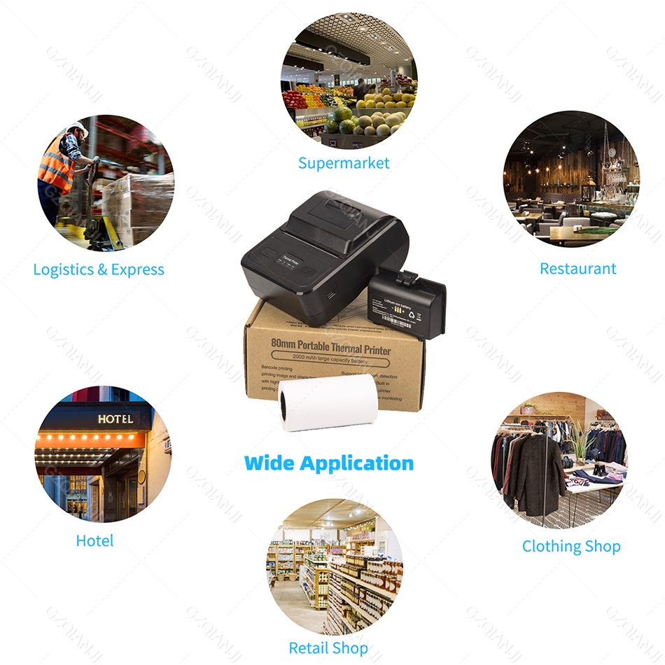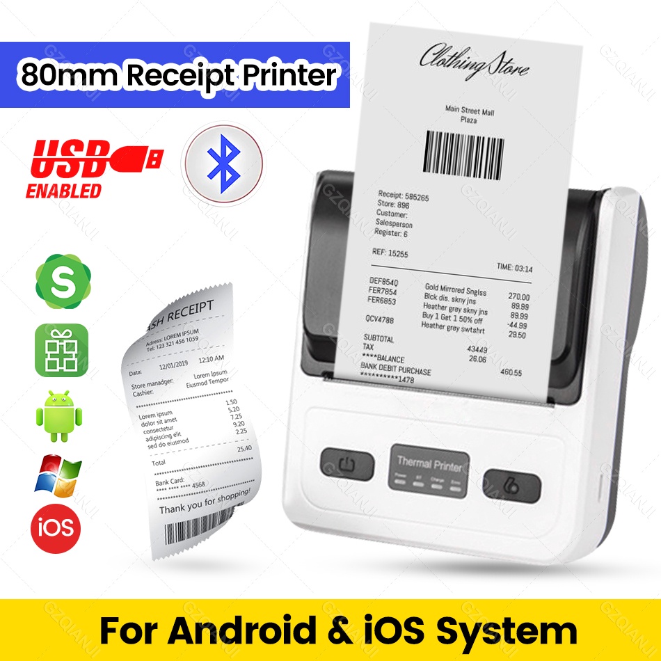 เครื่องพิมพ์ใบเสร็จไร้สายบลูทูธ 80 มม. รองรับ PC Android IOS ขนาดเล็ก แบบพกพา สําหรับธุรกิจ บิล บาร์โค้ด