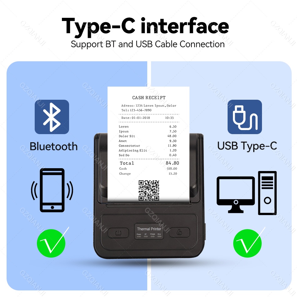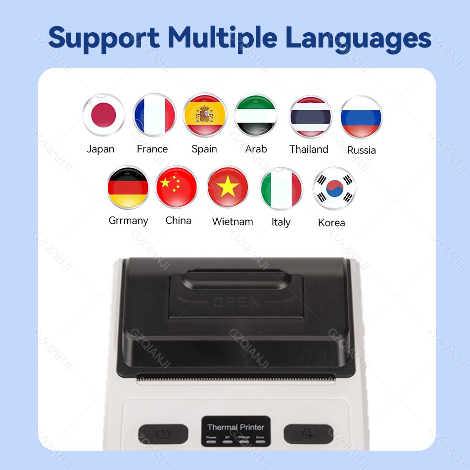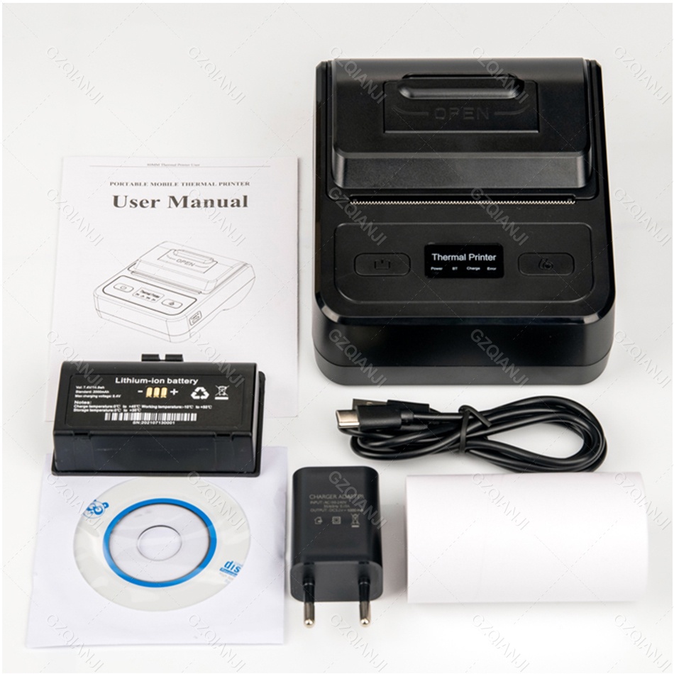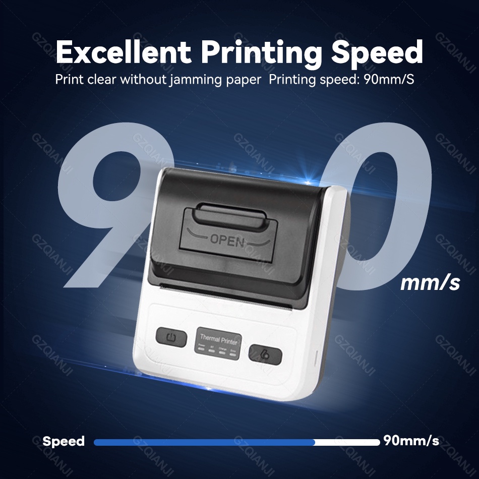 เครื่องพิมพ์ใบเสร็จไร้สายบลูทูธ 80 มม. รองรับ PC Android IOS ขนาดเล็ก แบบพกพา สําหรับธุรกิจ บิล บาร์โค้ด