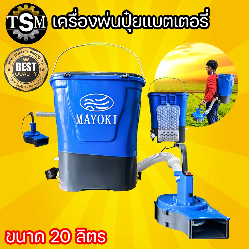 เครื่องพ่นปุ๋ยแบตเตอรี่ MAYOKI / กบแดง ขนาด 20ลิตร เครื่องพ่นปุ๋ยพ่นเมล็ด เครื่องให้อาหารปลา ไก่