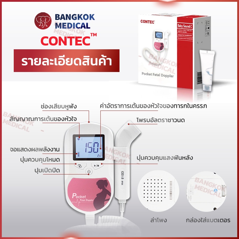[พร้อมส่ง] CONTEC รุ่น Sonoline A เครื่องฟังเสียงหัวใจทารก ไม่มีการตรวจจับรังสี เจลอัลตร้าซาวด์ ขนาด 50ml รับประกัน 1 ป