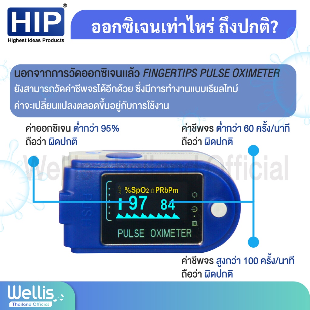 เครื่องวัดออกซิเจนปลายนิ้ว HIP Pulse Oximeter CMS50D - รับประกัน 1ปี สินค้ามี อย.