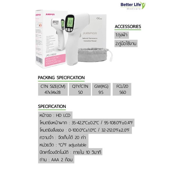 เเครื่องวัดอุณหภูมิอินฟราเรด Jumper รับประกัน 1 ปี