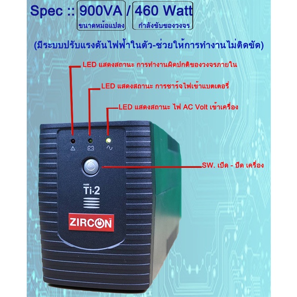 เครื่องสำรองไฟ UPS ZIRCON (900VA / 460W.) Spec.สูง ราคาถูก ที่นี่ที่เดียว (สินค้าใหม่ ทุกเครื่อง - ไม่ใช่สินค้ามือสอง)