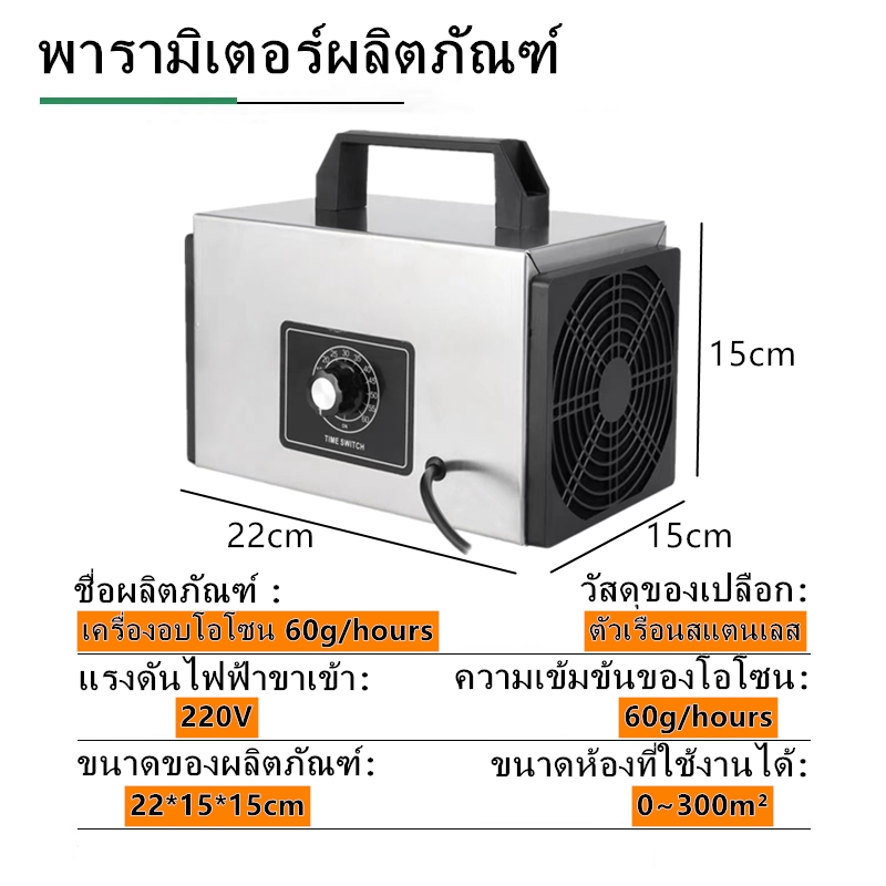 เครื่องอบโอโซน Ozone generator สำหรับฆ่าเชื้อ ความเข้มข้นสูง 60g/hours โอโซน เครื่องผลิตโอโซน ฟอกอากา ศ แบคทีเรีย