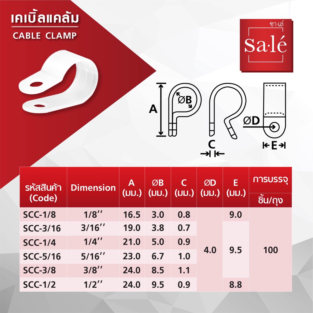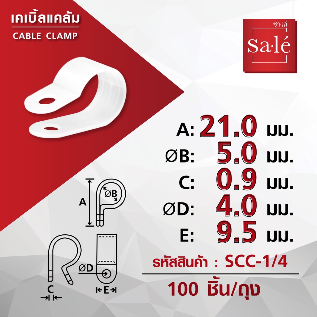 เคเบิ้ลแคล้ม ตัวยึด ตัวล็อคสายไฟ สายรัดท่อ Cable Clamp 100ชิ้น/ถุง