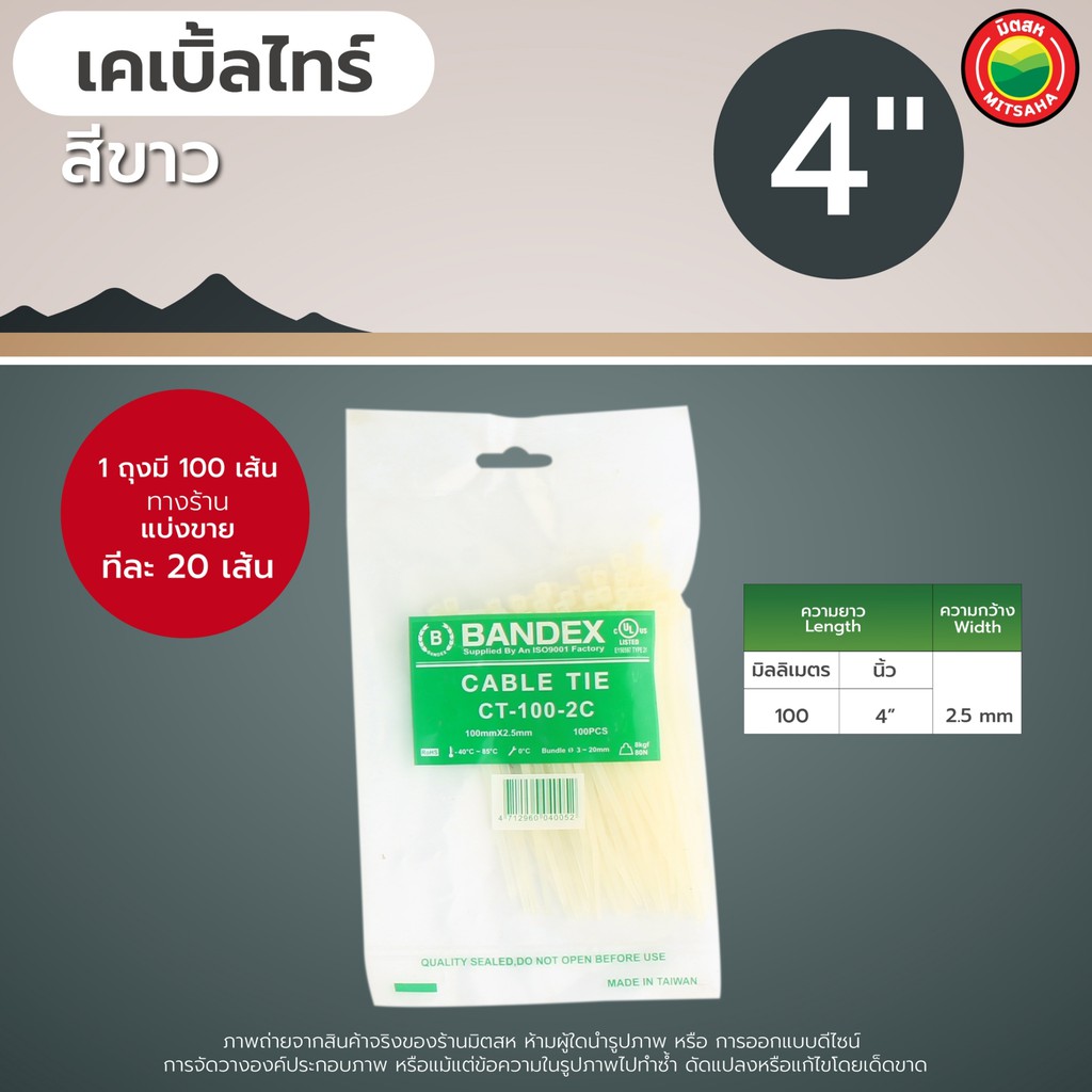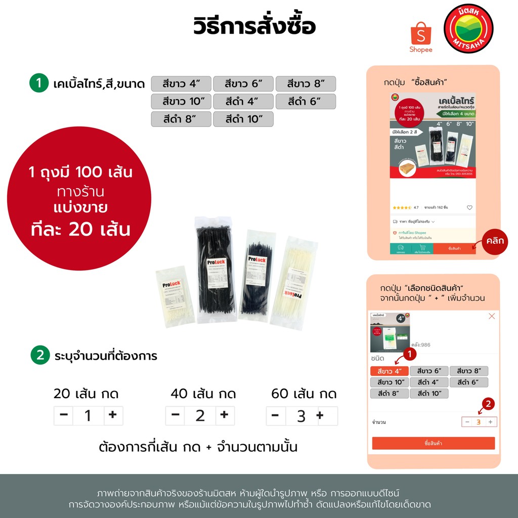 เคเบิ้ลไทร์ หนวดกุ้ง ไนล่อน สี ขาว ดำ 4,6,8,10 นิ้ว แบ่งขาย 20 เส้น Cable Tie Zip Tie Tie Wrap เคเบิ้ลทาย สาย รัด. มิตสห
