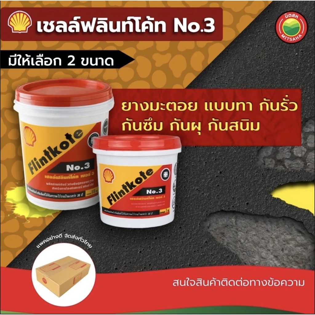 เชลล์ฟลินโค้ท ผลิตภัณฑ์ป้องกันการรั่วซึม เบอร์ 3 สีดำ 1/4, 1 แกลลอน SHELL FLINTKOTE ฟลินท์โค้ท ฟริ้นโค้ท ยางมะตอย มิตสห