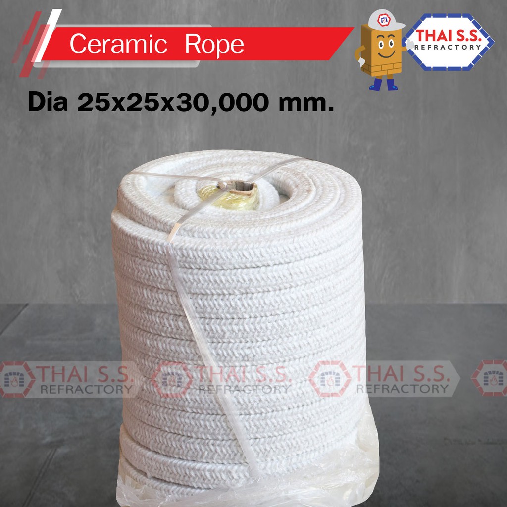 เชือกทนไฟ (CERAMIC FIBER ROPE) 1260 C เหลี่ยม ขนาด 25x 25 x 30,000 mm สินค้าพร้อมส่ง