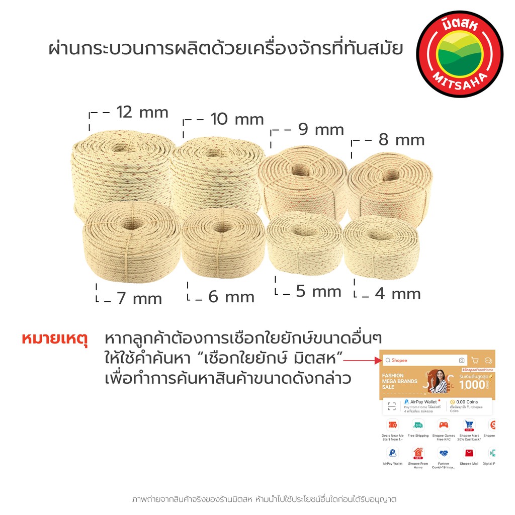 เชือกใยยักษ์ มิตสห ขนาด 8 มิล น้ำหนักเริ่มต้น1กิโล เกรดAAA แบ่งขายเป็นกิโล HDPP Boat Rope เชือกใยยัก เชือกไยยัก เชือก