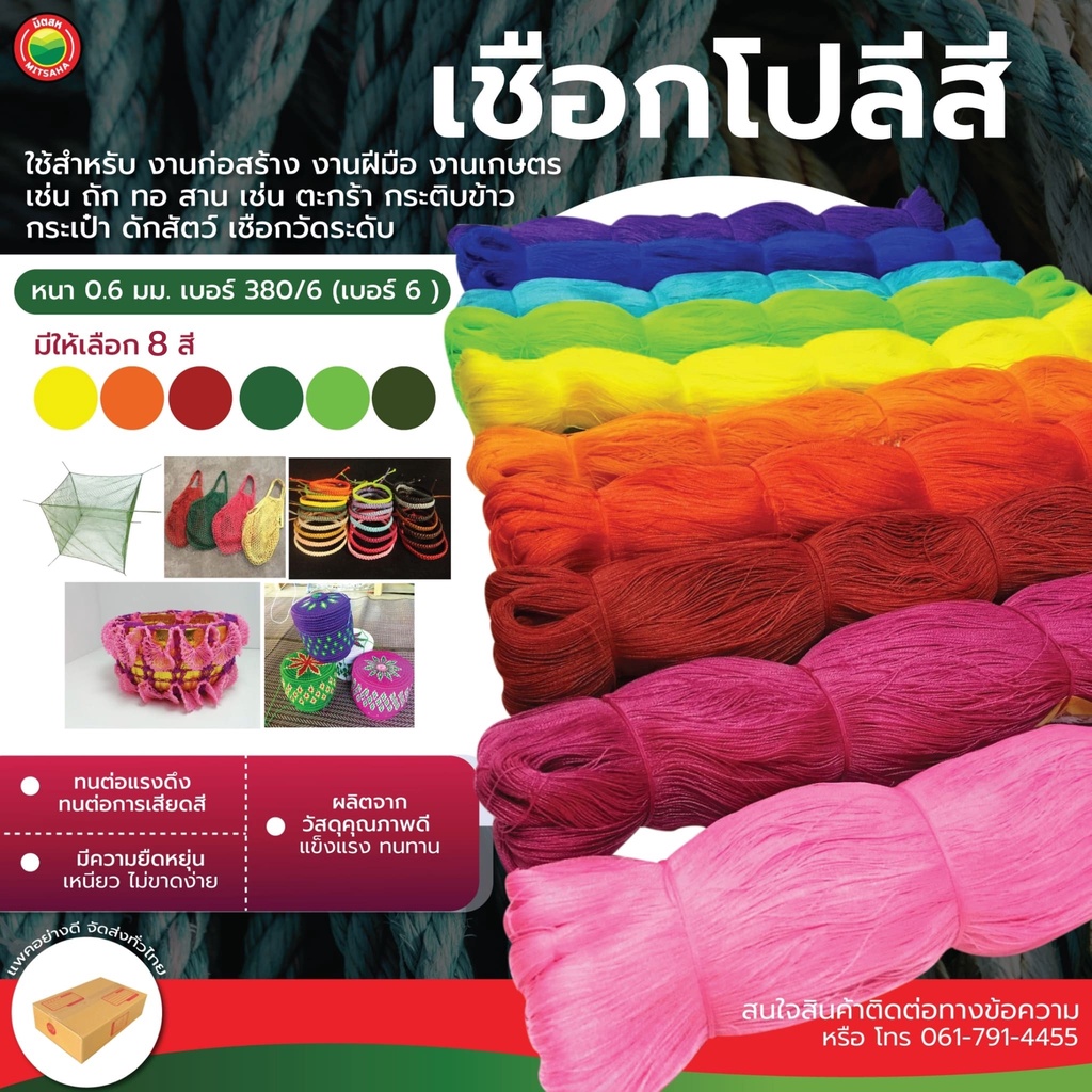 เชือก โปลี ด้ายโปลี เชือกโปลีสี เชือกไนล่อน 380/6 เบอร์ 6 POLY ROPE ด้ายโปลี เชือกใจ เชือกไนล่อนสี คละสี มิตสห Mitsaha