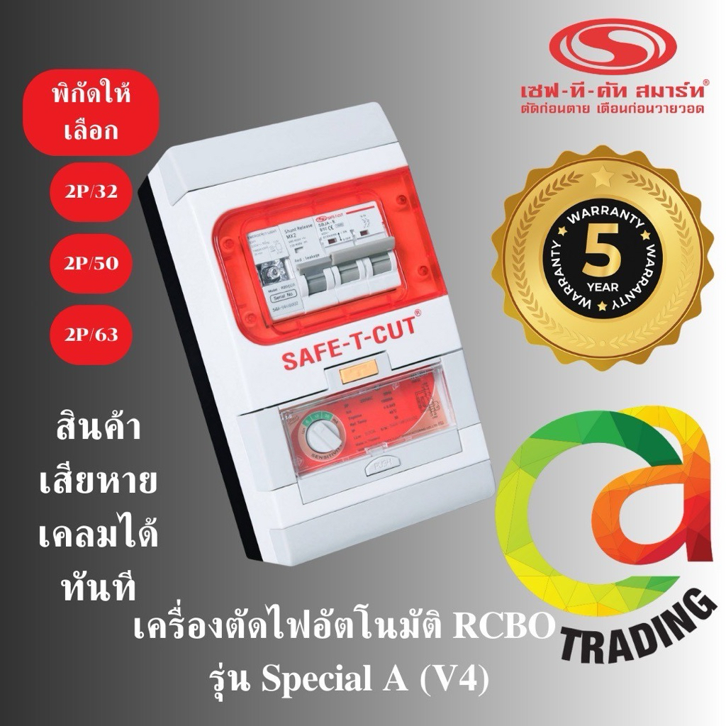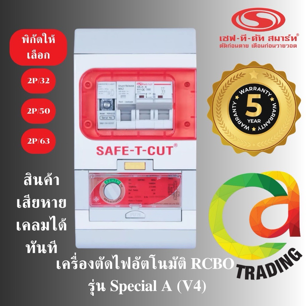 เซฟ-ที-คัท รุ่นใหม่ล่าสุดV4 มีไฟLED ขนาด2p/50A