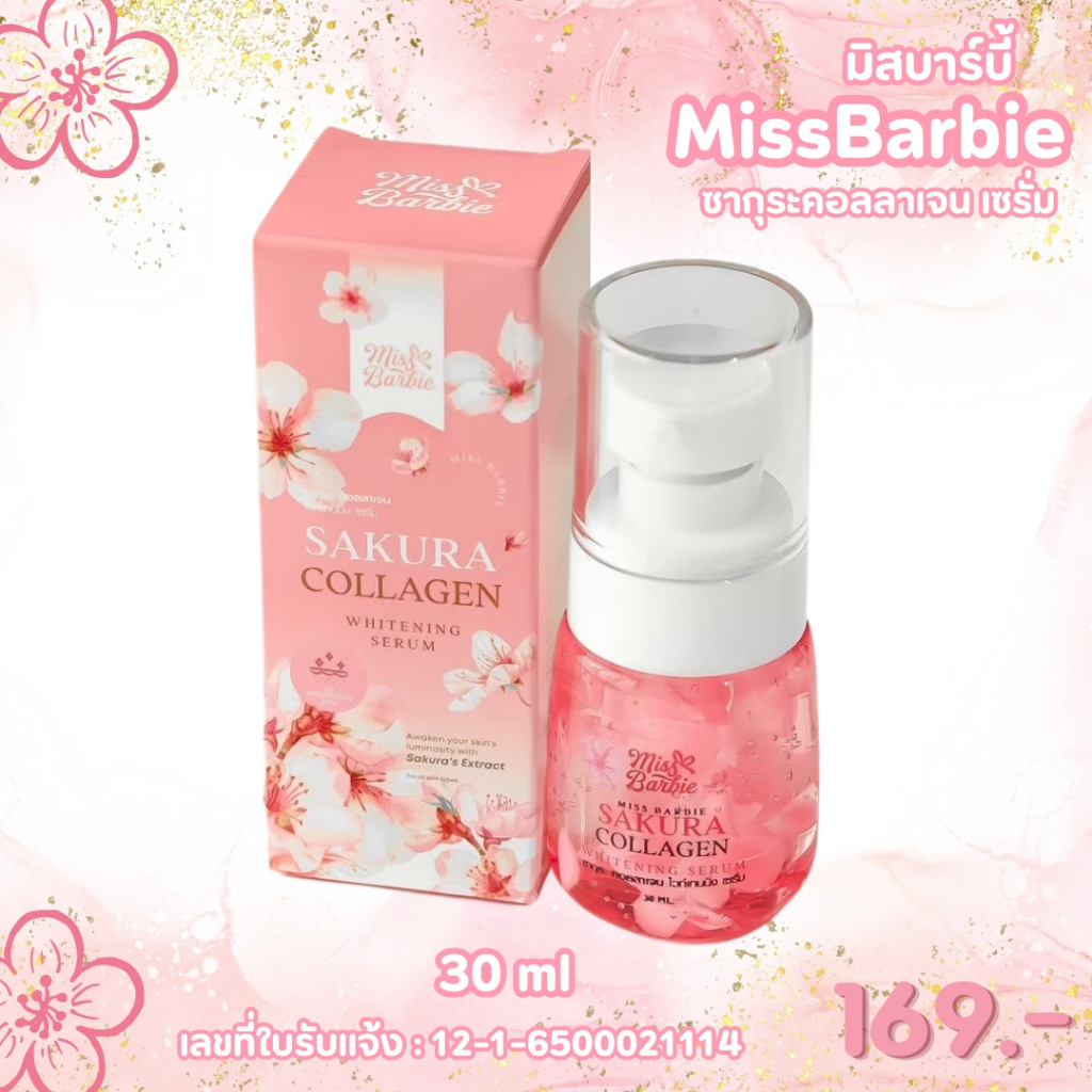 <เซรั่มบำรุงผิวหน้า> มิสบาร์บี้*ซากุระ*ไวท์เท่นนิ่งเซรั่ม *30 ml *เซรั่มหน้าใสกระชับเต่งตึง ขวดใหญ่ใช้ได้ นานสุดคุ้ม!!