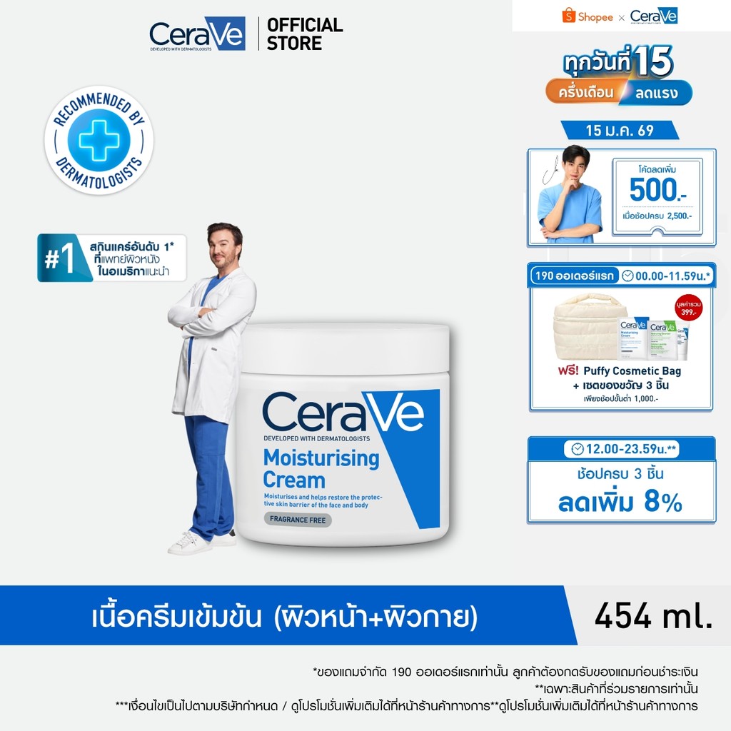 เซราวี CERAVE Moisturising Cream ครีมบำรุงผิวหน้าและผิวกายสำหรับผิวแห้งมาก 454g.(มอยเจอร์ไรเซอร์ Moisturising Cream ผิวช