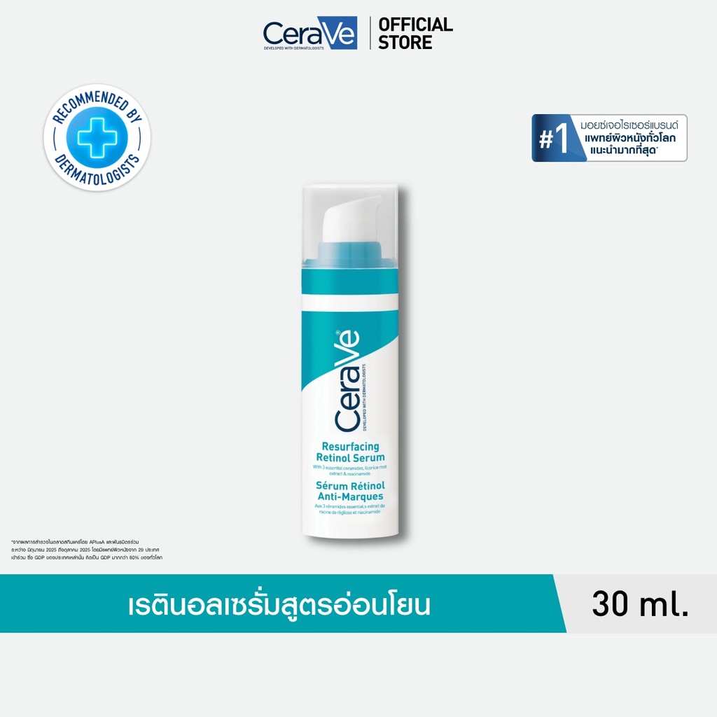 เซราวี CERAVE Resurfacing Retinol Serum เรตินอลเซรั่ม 30ml. ผลิตภัณฑ์บำรุงผิวหน้าสำหรับผู้มีปัญหารอยดำรอยสิว